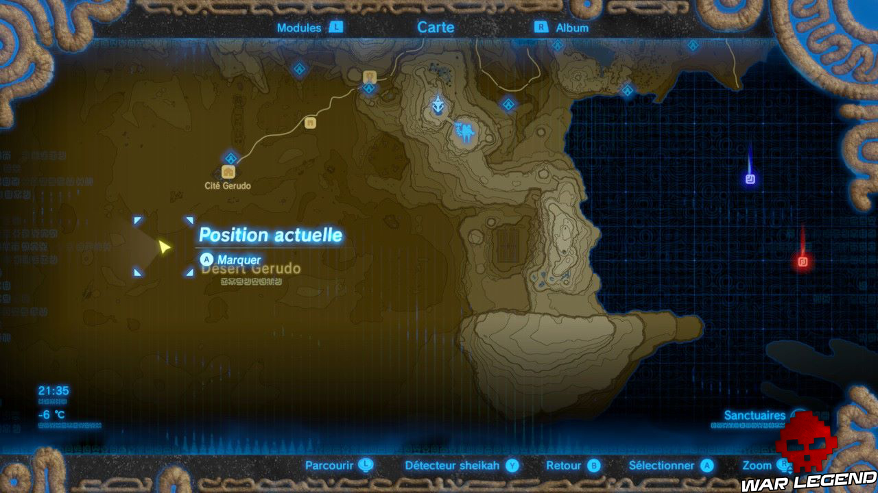 Partez à présent au sud-ouest de de la Cité Gerudo, en direction du squelette que vous pouvez voir sur la carte. Sur la route, vous pourrez trouver un Korogu sous un rocher.