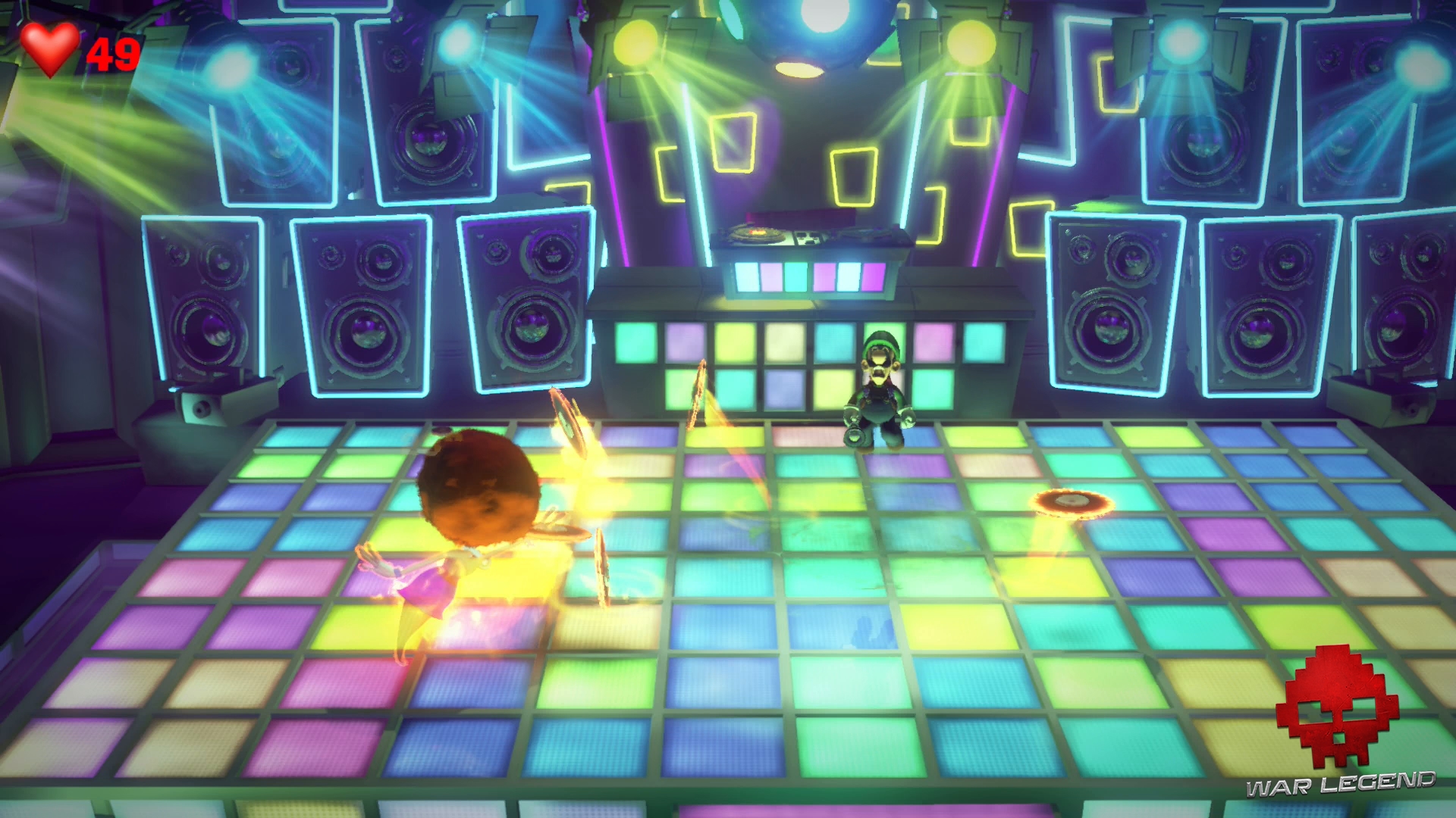 Pour attaquer la vie du boss, vous devrez la surprendre en train de lancer ses disques. Pendant une attaque, soyez près d’elle et faites une bourrasque. Il n’y a plus qu’à la flasher et « l’inviter à danser ».