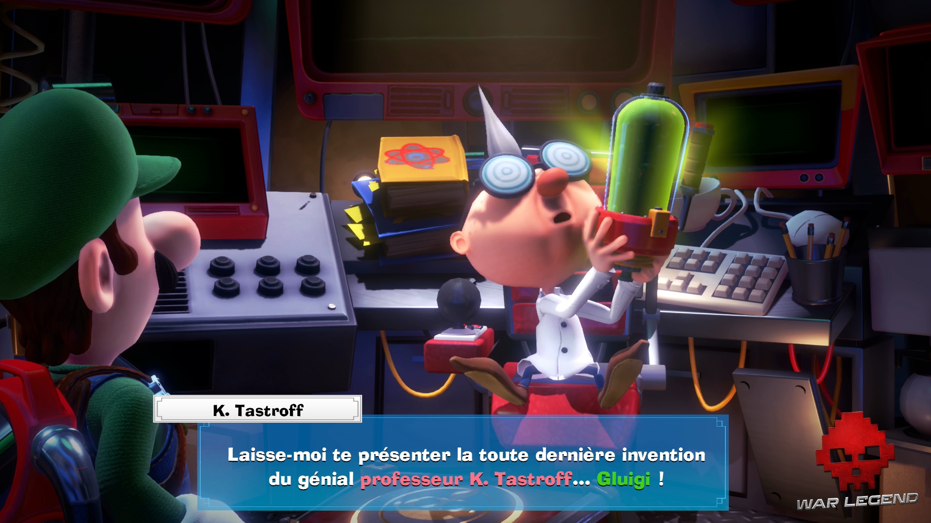 Retournez voir le professeur K.Tastroff au parking. La valise va permettre de mettre à jour l’Ectoblast GL-U avec sa fonctionnalité principale : Gluigi.