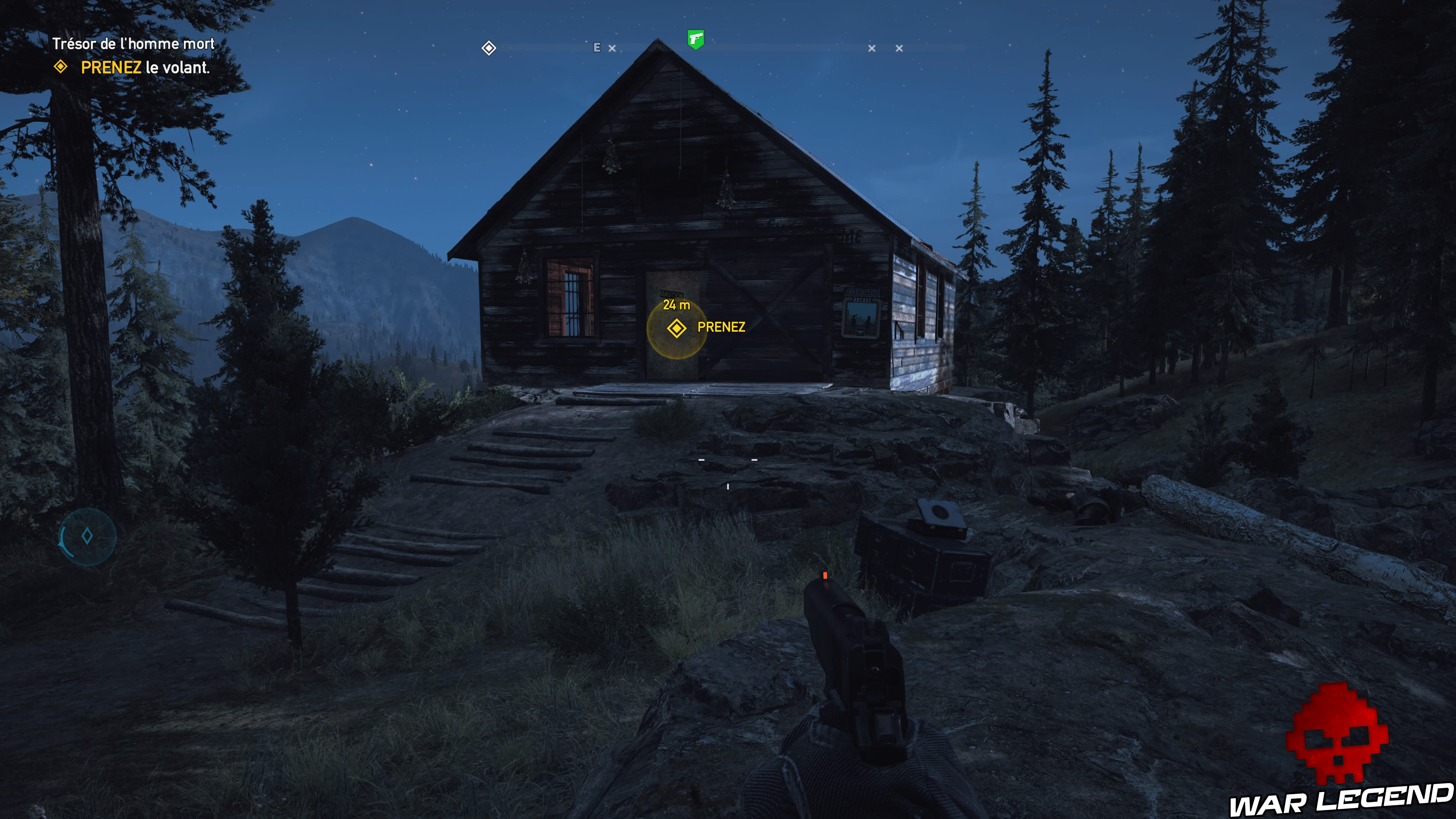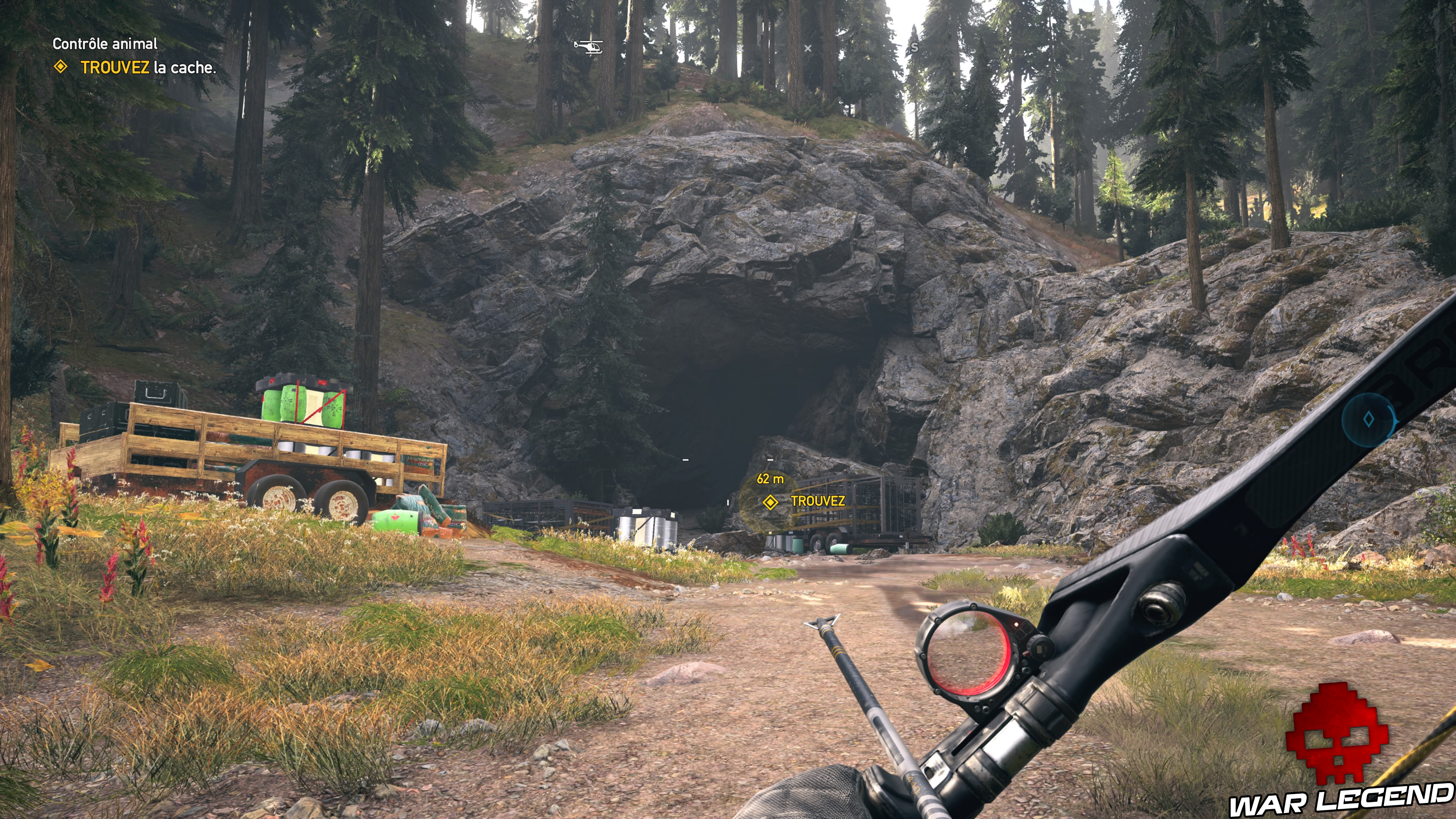 À Dead Man’s Mill, au sud du Couvent d’Eden’s Gate, entrez dans la bâtisse en la contournant et en passant par le niveau inférieur (il y a une grotte en dessous par laquelle vous pouvez passer). Prenez la roue à aubes et ressortez. Allez au barrage pour la placer et l’utiliser. Descendez ensuite en contrebas et utilisez le grappin pour descendre et trouver une grotte dans la paroi rocheuse.