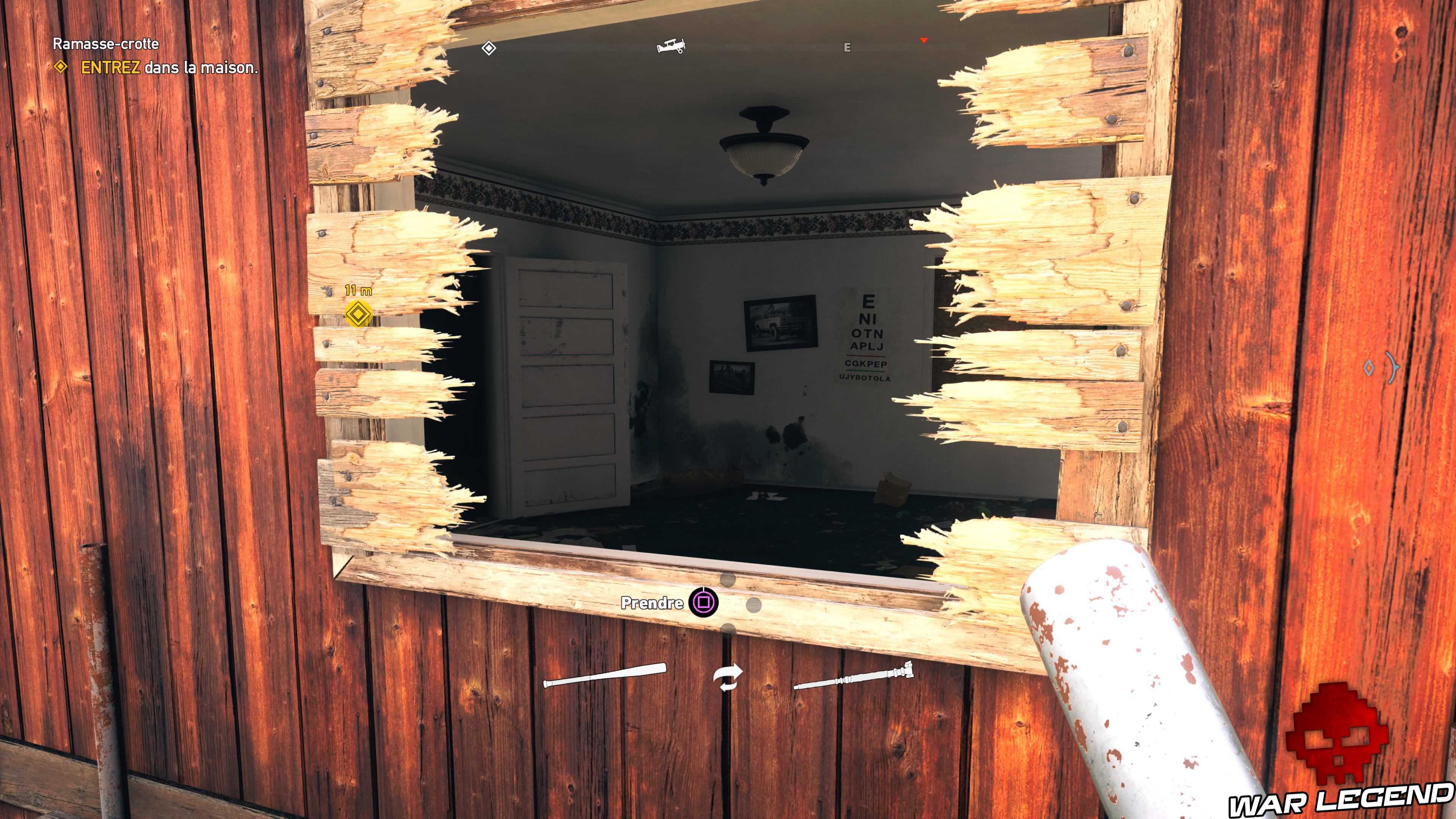 Allez au Camp de vacances de Siver Lake, au nord de la Taxidermie de Pêpêche. Grimpez sur l’échafaudage qui borde la maison et brisez les planches qui couvrent une fenêtre pour entrer. Vous allez devoir ramasser les crottes de chien pour trouver la carte magnétique. Quand vous l’avez, sortez et suivez le chemin vers la cache (maison sur la gauche).