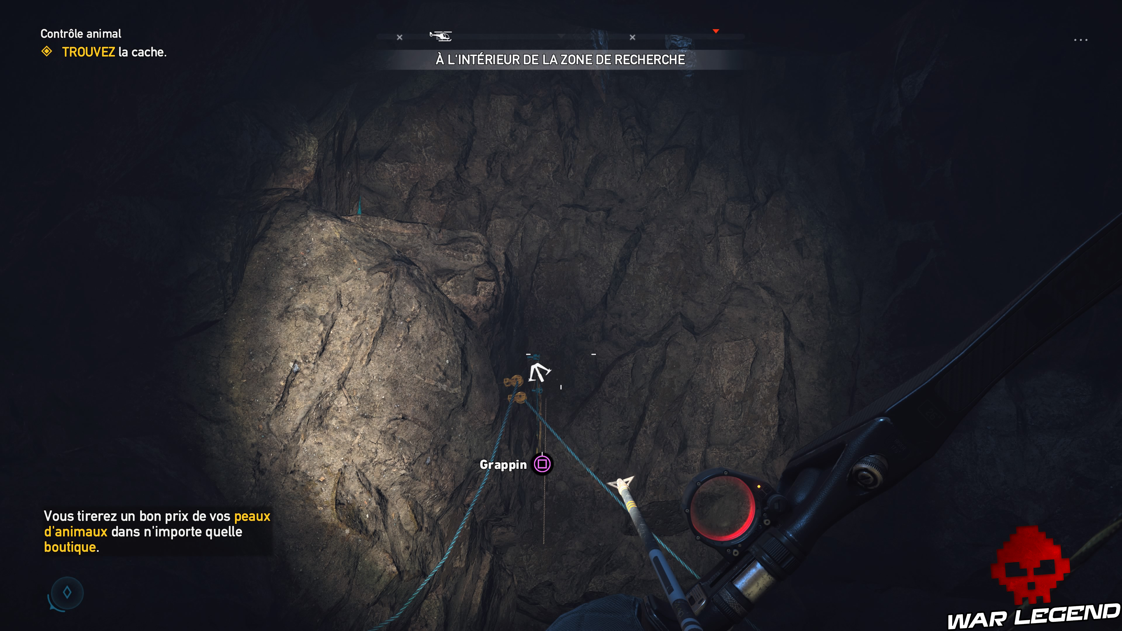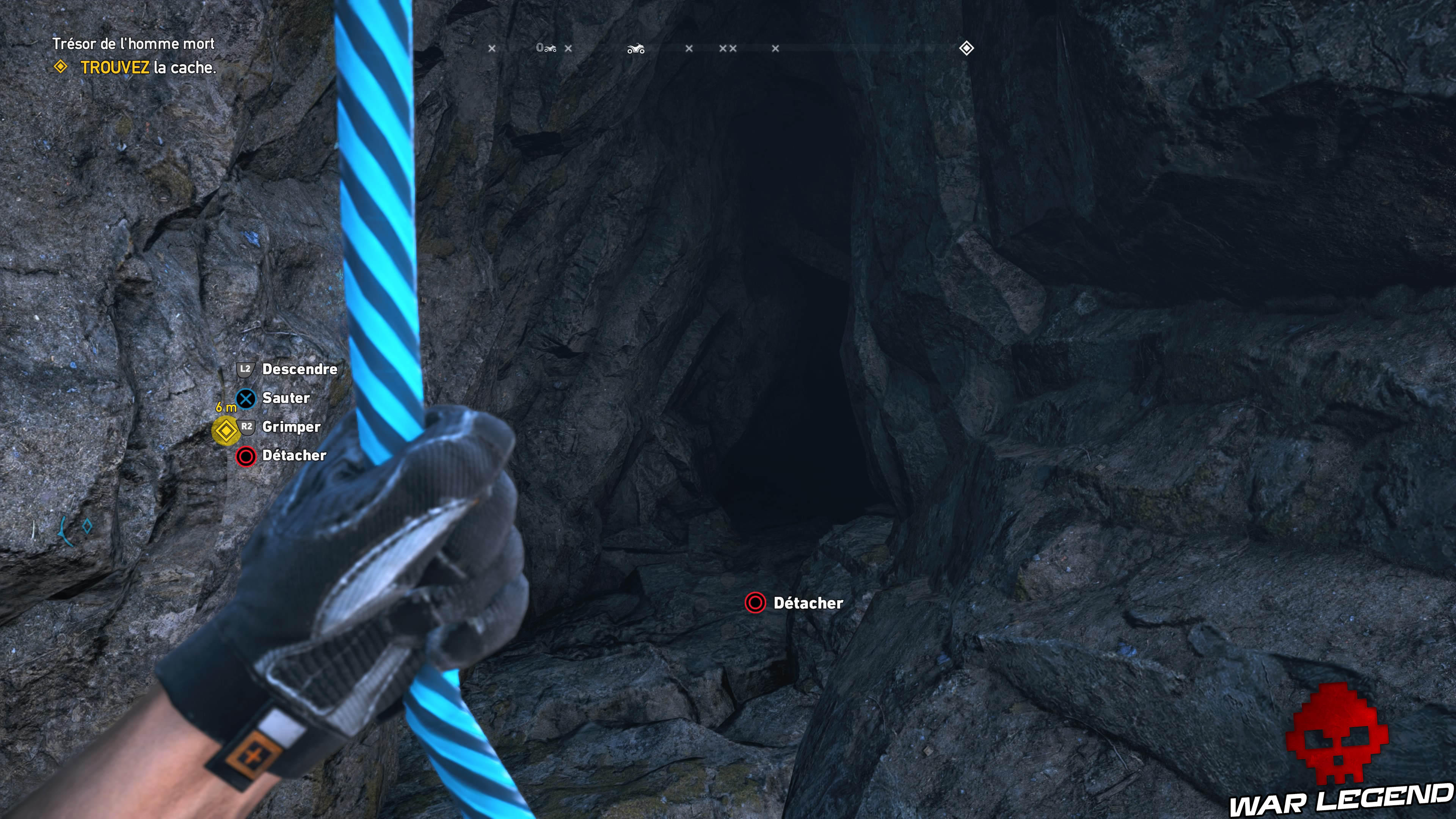 Cette cache se trouve dans la Howling Cave, juste au-dessus de la Taxidermie de Pêpêche. Dès l’entrée, utilisez le grappin pour atteindre la hauteur puis suivez le chemin jusqu’à trouver des ennemis à descendre. Là, utilisez à nouveau le grappin pour trouver la cache.