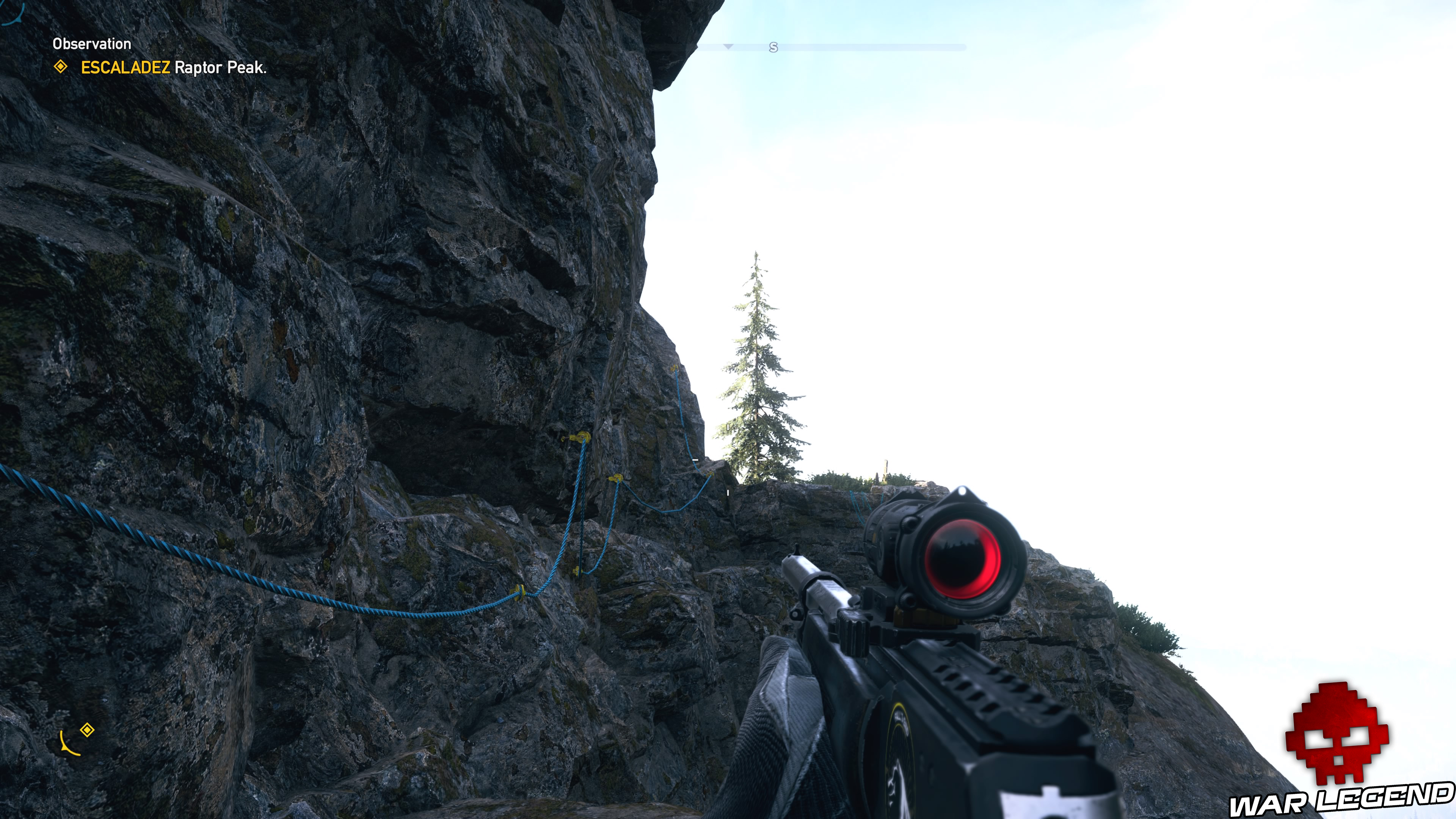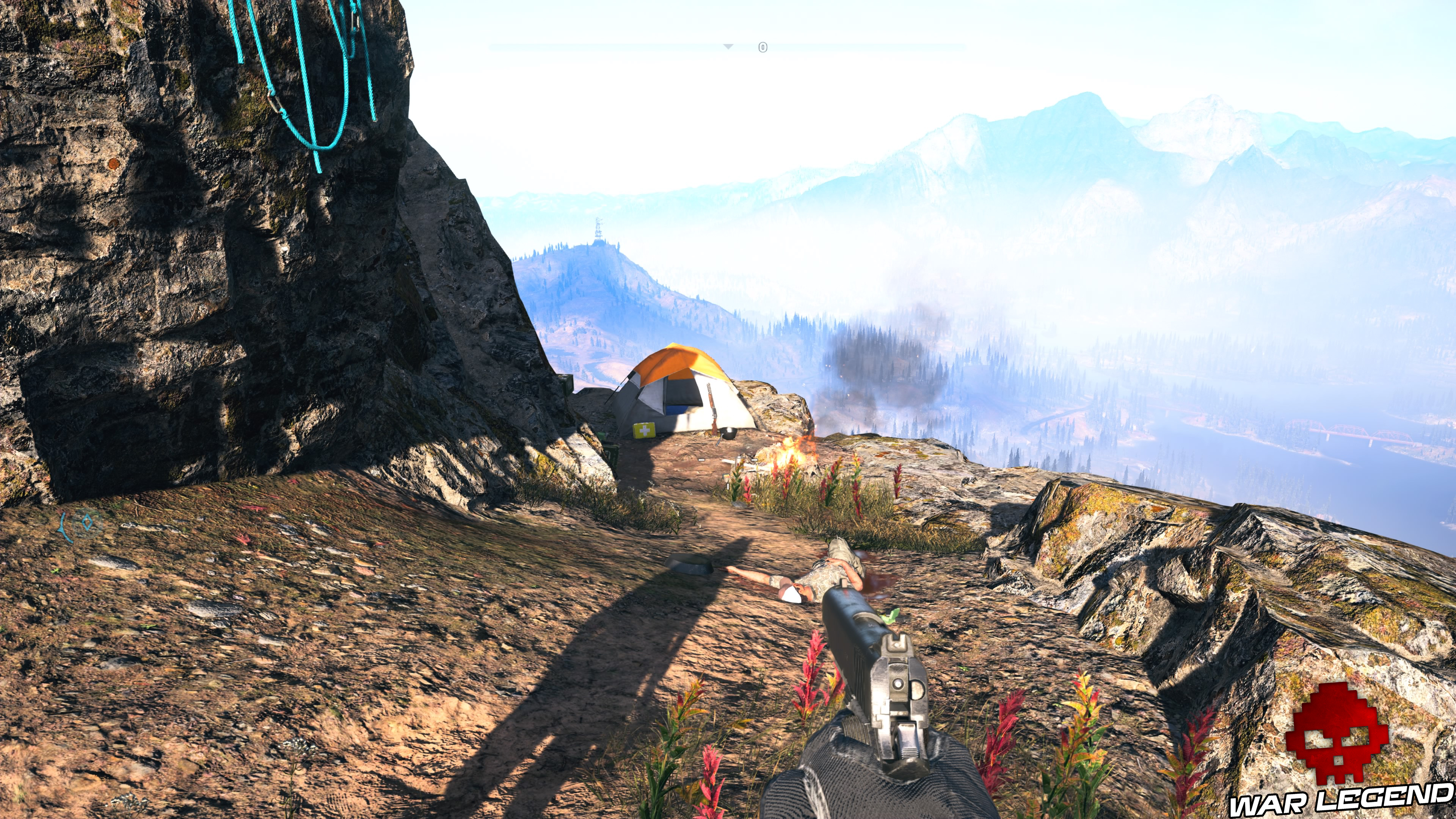 Rendez-vous à Raptor Peak. Vous allez devoir grimper jusqu’au sommet. Avancez et n’oubliez pas de regarder en l’air pour utiliser les points d’ancrage de grappin. Une fois au sommet, vous trouvez une tente qui constitue la cache que vous recherchez. Vous débloquez au passage la tenue Stewart.