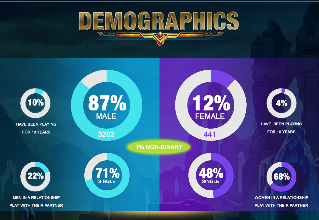 Enfin, presque. Si on considère que 98% des sondés d’un échantillon des 3 784 personnes ne sont pas représentatifs de l’ensemble de la population de League of Legends. C’est en tout cas ce qui est ressorti d’un sondage mené sur Reddit par un·e certaine·e Celianna. Le résultat mis en valeur par un infographique est assez sidérant. La communauté du subreddit n’est peut-être pas 100% représentative (généralement des joueurs motivés à participer aux échanges de League of Legends), mais il y a tout de même du beau monde qui a pris le temps de remplir le sondage.