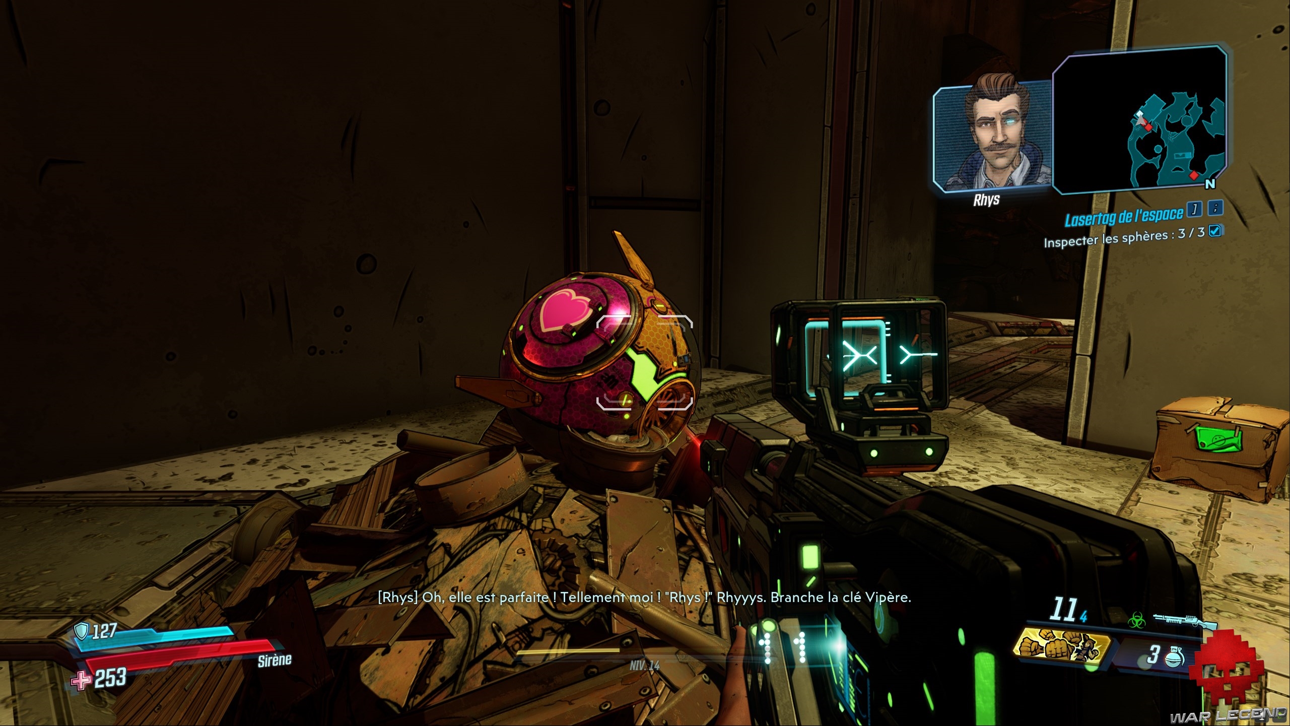 Dirigez-vous vers la porte qui se trouve un peu plus loin. La clé vipère échouant une fois de plus, Rhys vous demande de lui dégoter une sphère de mort pour qu’il puisse la piloter à distance et pirater la porte. Vous avez ainsi 3 sphères à inspecter (la bonne étant évidemment la troisième).