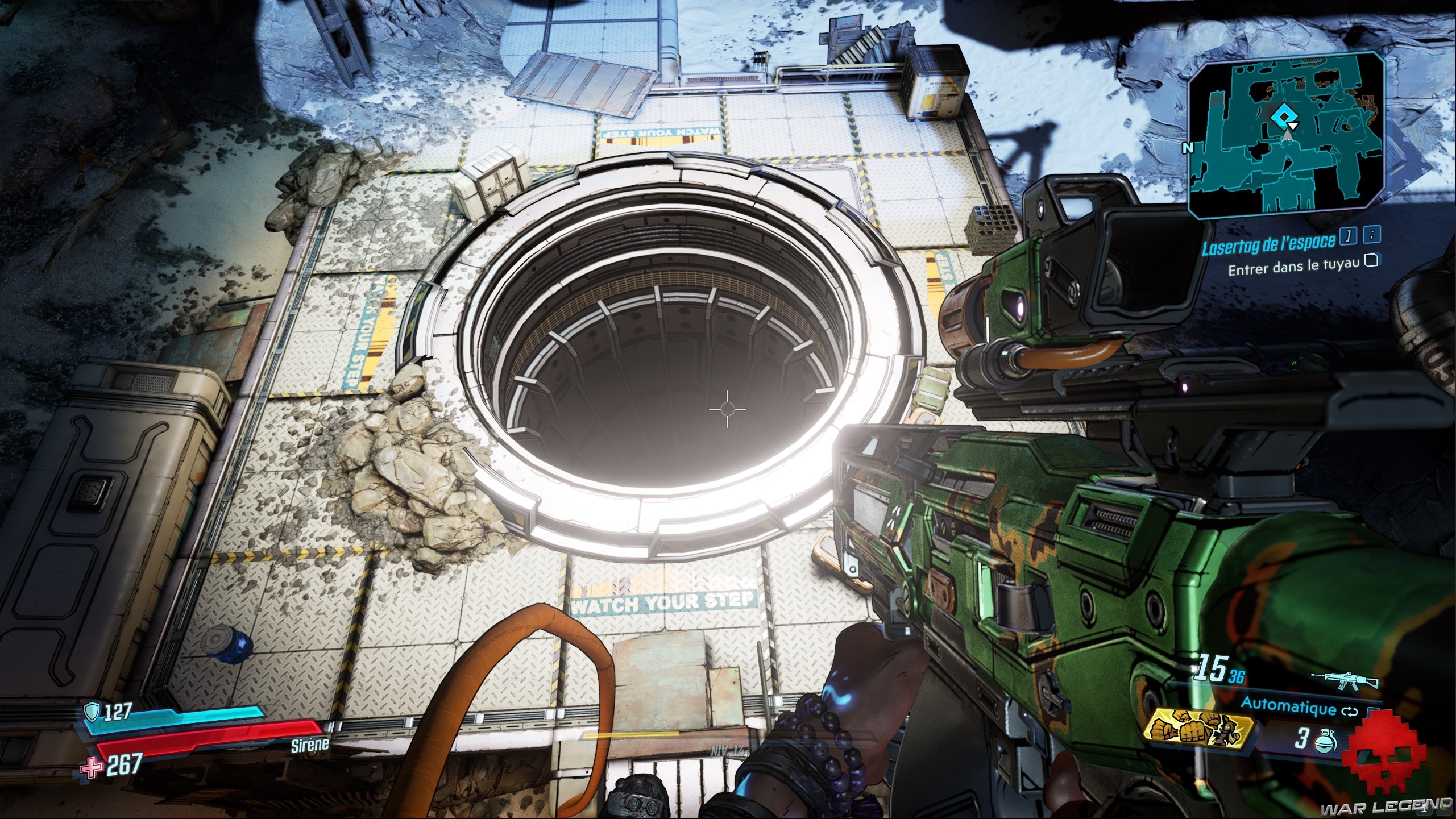 En avançant un peu plus, vous arrivez dans la zone où il vous faut ouvrir un tuyau. Dézinguez bandits et soldats Maliwan présents, puis prenez les escaliers du fond qui mènent jusqu’à un levier. Actionnez-le pour ouvrir le tuyau et sautez dans ce dernier.