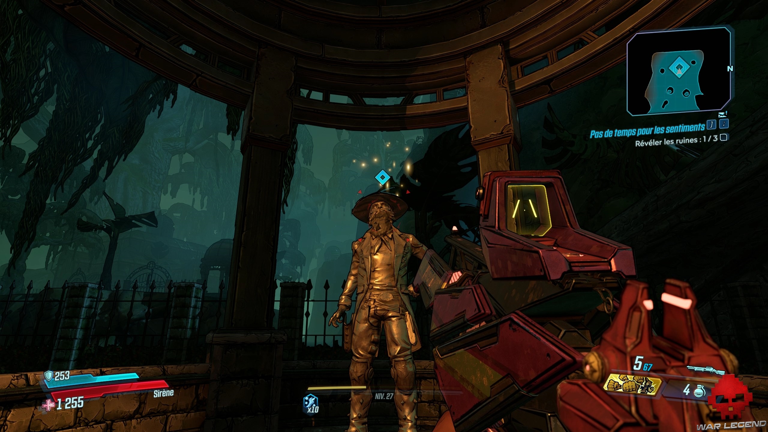 Le boss n’est pas bien dur, mais les dégâts sur votre tronche peuvent vite monter. Faites attention particulièrement attention à ses tornades, qui, en plus de vous envoyer en l’air, vous ralentisse. Du reste, détruisez le pilier de glace dans lequel Aurélia s’enferme : elle régénère très vite son bouclier une fois dedans. Après que vous l’ayez vaincu, parlez à Hammerlock.
