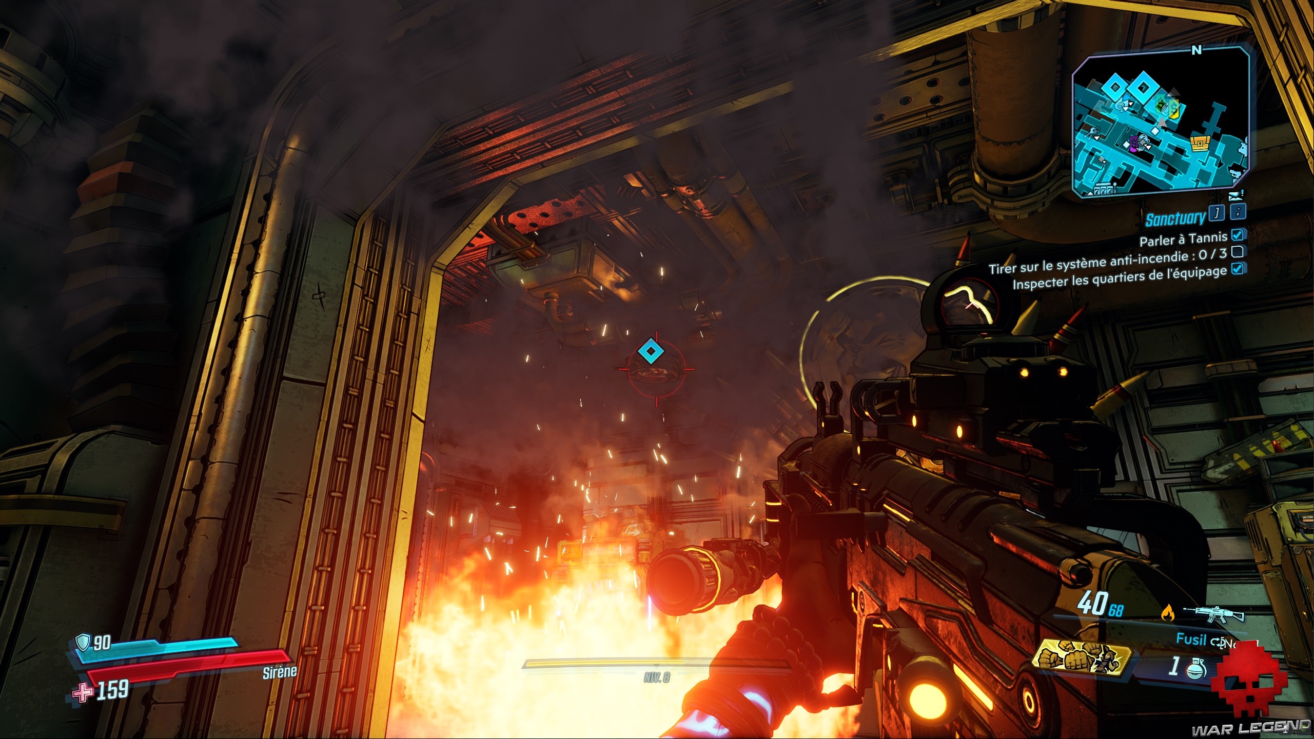 Les conn***** de Clappy ont causé pas mal de dégâts un peu partout dans Sanctuary. À la demande de Lilith, vous partez en aide au reste de l’équipage. Commencez par aller en arrière et vous dirigez vers Tannis. La pièce où elle se trouve cette dernière se trouve a gelé dû à la défaillance du système de contrôle thermique. Réglez le problème façon brutasse en frappant ledit système.
