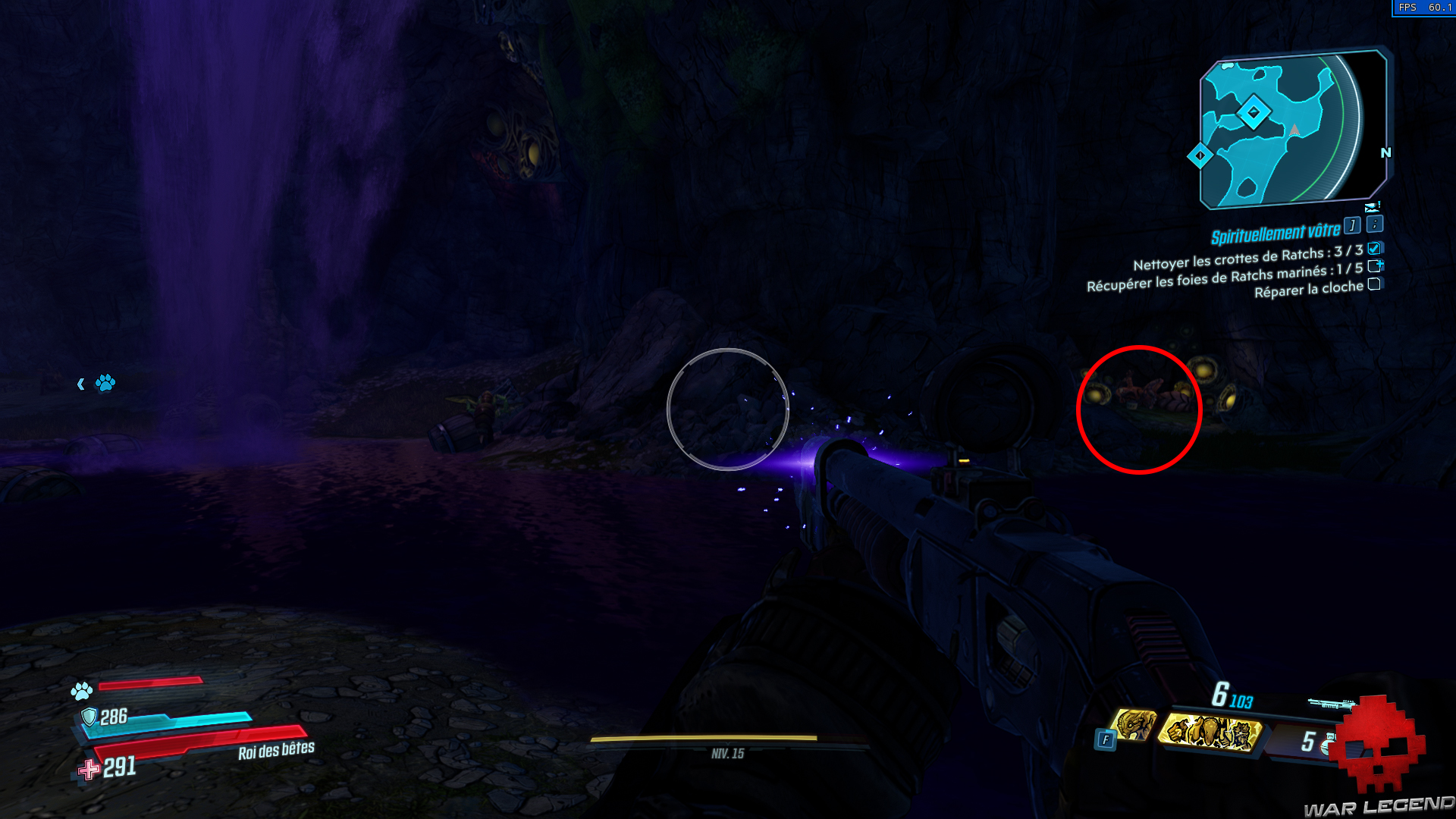 Retournez dans la première salle avec la cascade et dirigez-vous vers la porte bloquée à gauche de la grille. Tirez sur le tonneau en hauteur pour faire fondre la crotte et tuez le gros ratch derrière.
