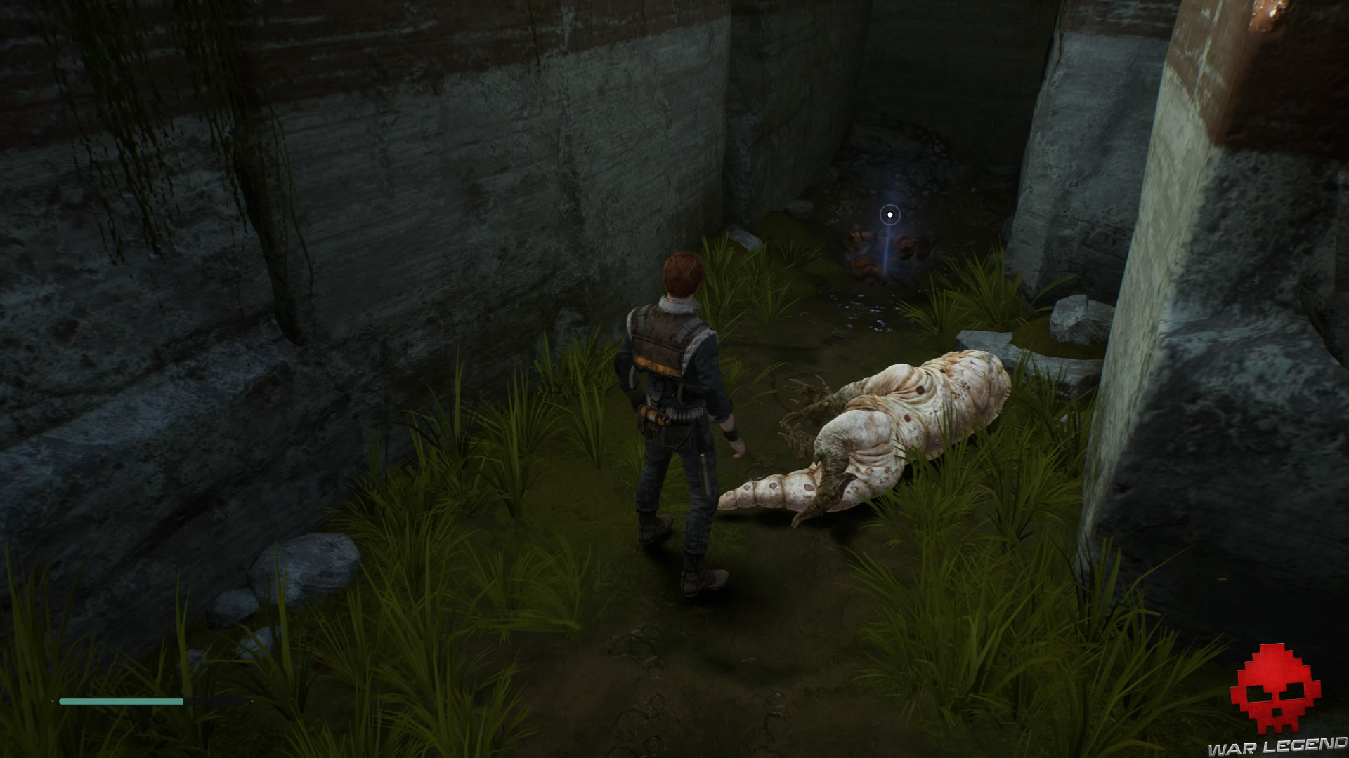 Sautez en bas à droite et tuez la créature. Retournez-vous et ouvrez le coffre caché dans le renfoncement.