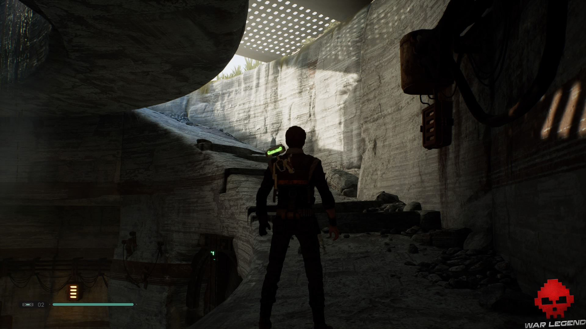 Utilisez votre pouvoir de Jedi pour ralentir l’hélice et pénétrer dans le bâtiment. Une fois en bas, utilisez une nouvelle fois votre pouvoir afin d’atteindre et récupérer votre première essence de force.