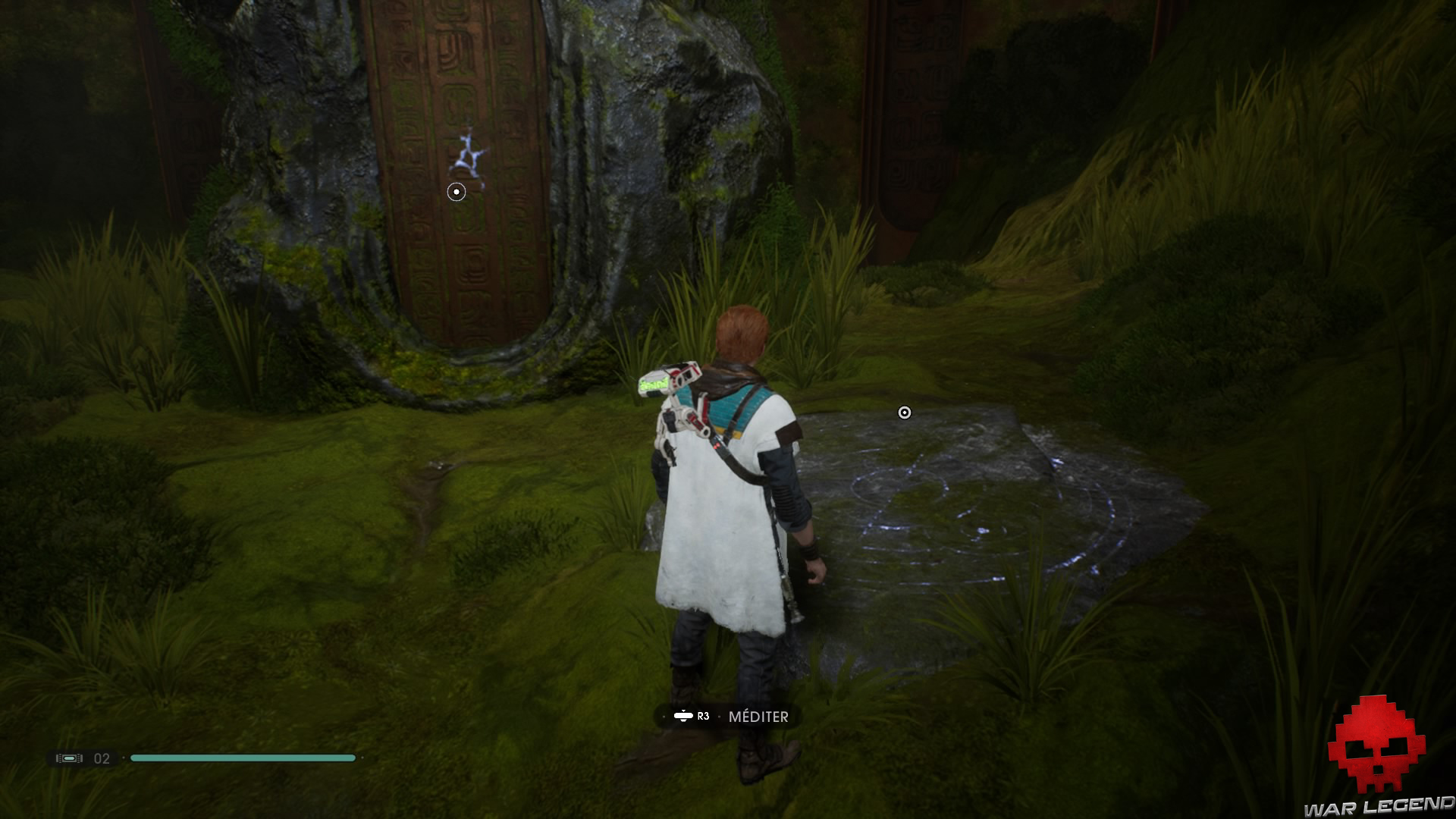 Après avoir échappé à la Deuxième Sœur sur Bracca, vous atterrissez finalement sur la planète Bogano, en compagnie de Cere Junda et Greez Dritus. Sans plus tarder, descendez sur la droite, puis longez à gauche jusqu’à atteindre le premier point de méditation.