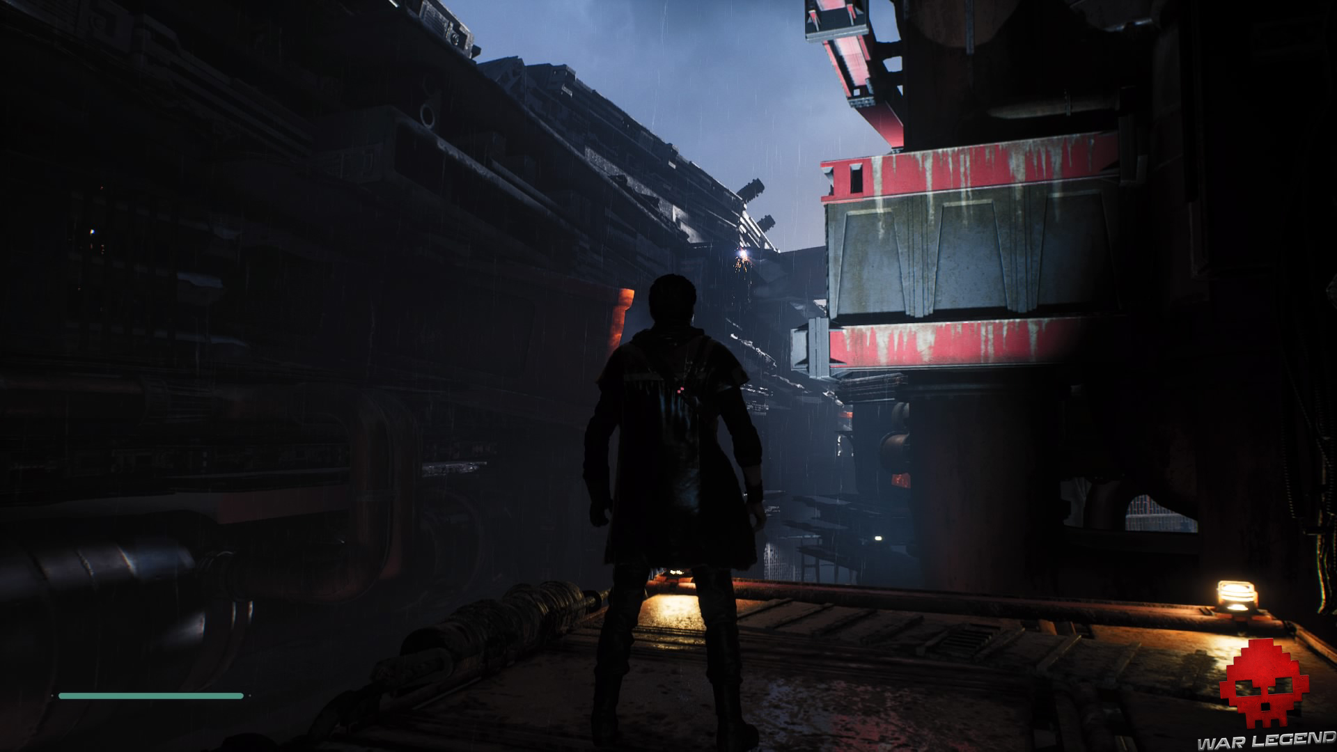 Poursuivez votre progression dans les conduits jusqu’à tomber nez à nez avec d’autres poutres rouges. Il faudra bien évidemment les escalader en longeant la gauche, avant de se laisser tomber sur une plateforme en contrebas.