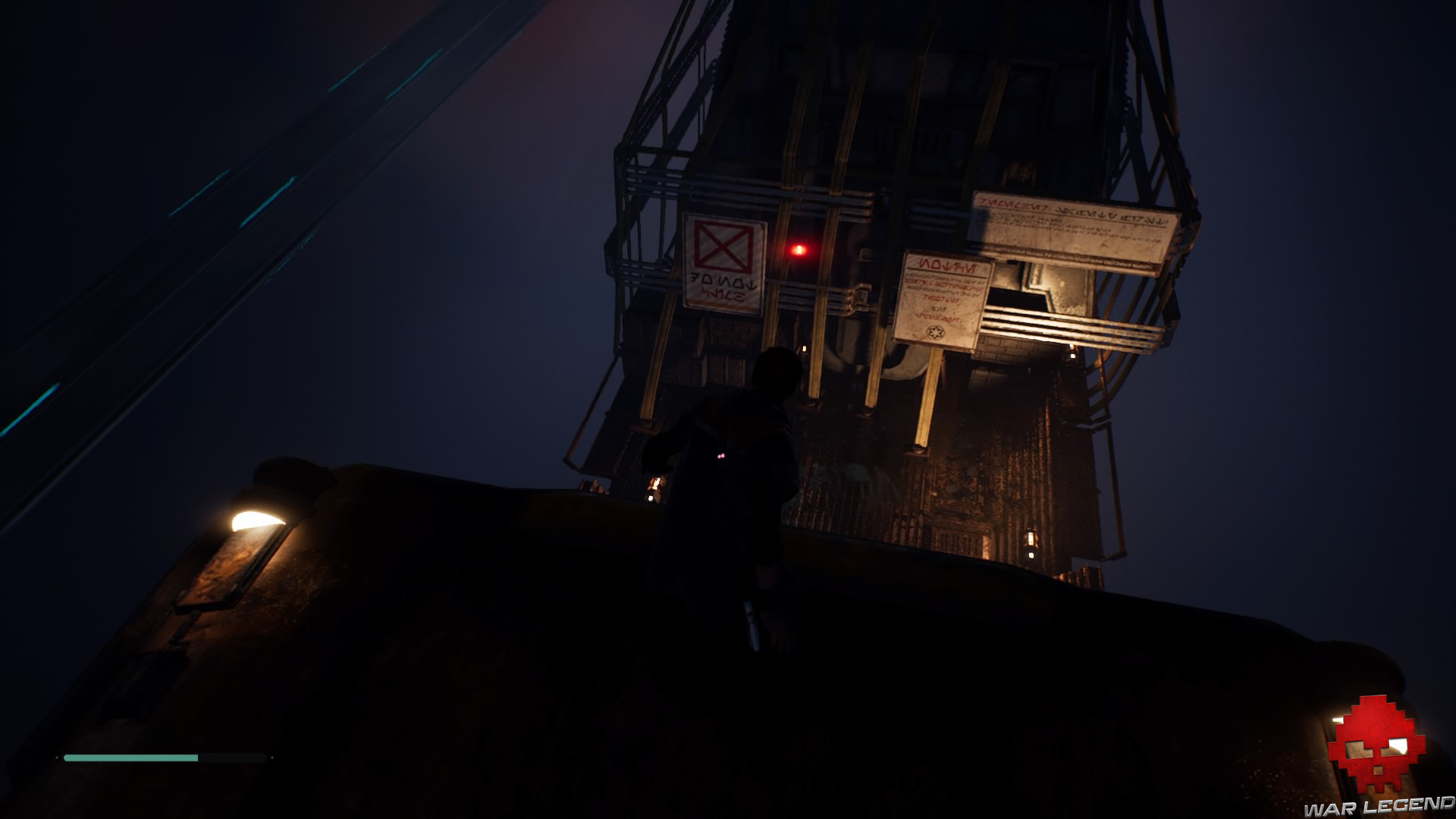Une fois la zone déblayée, continuez tout droit jusqu’à arriver sur le toit d’un wagon. De là, une cinématique se lance dans laquelle vous allez devoir diriger votre personnage pendant qu’il glisse avant de sauter au dernier moment dans le vaisseau en face de vous.