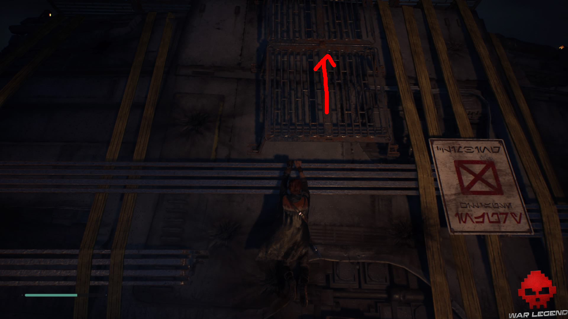 Vous voilà arrivé à votre première « épreuve » d’escalade. Sautez sur la grille en maintenant la touche pour agripper, puis montez tout en haut à droite.