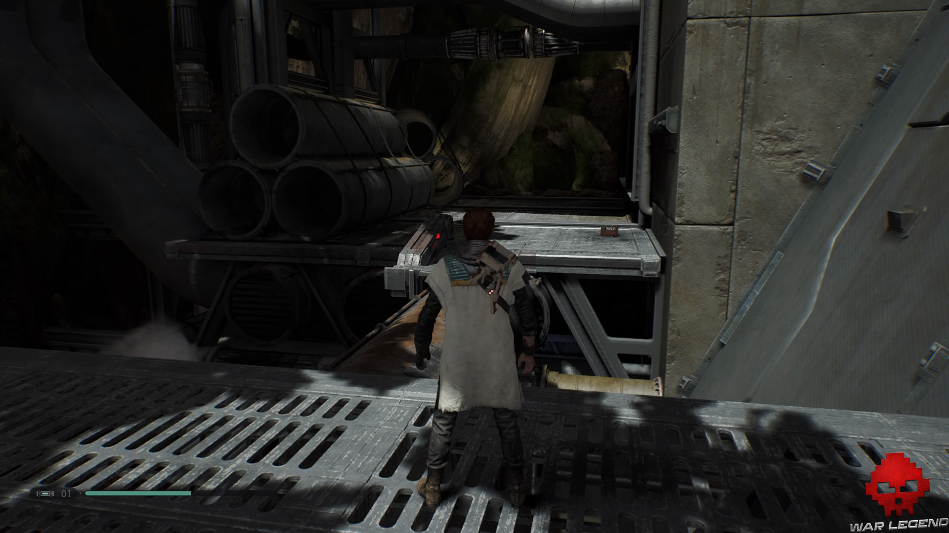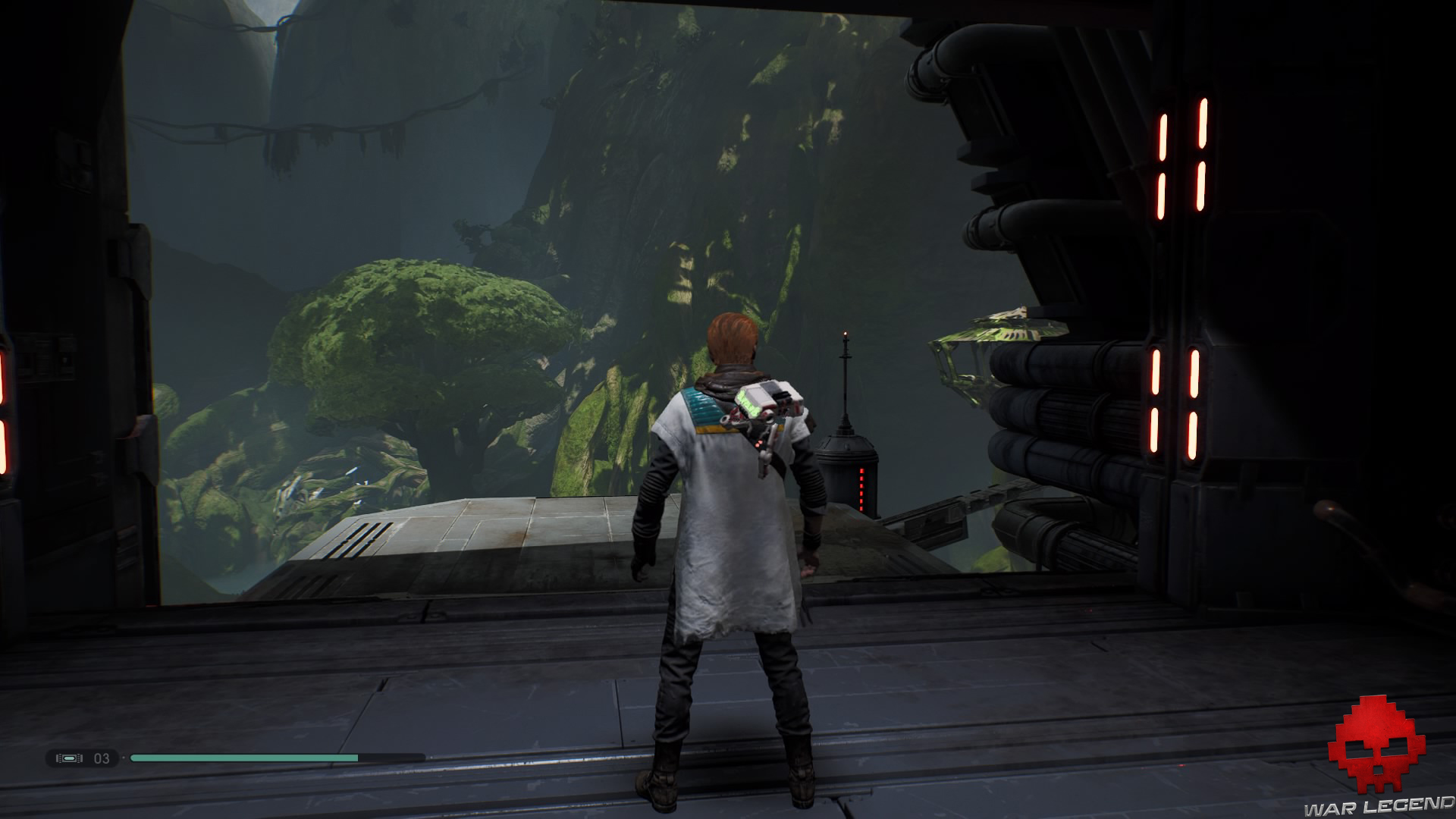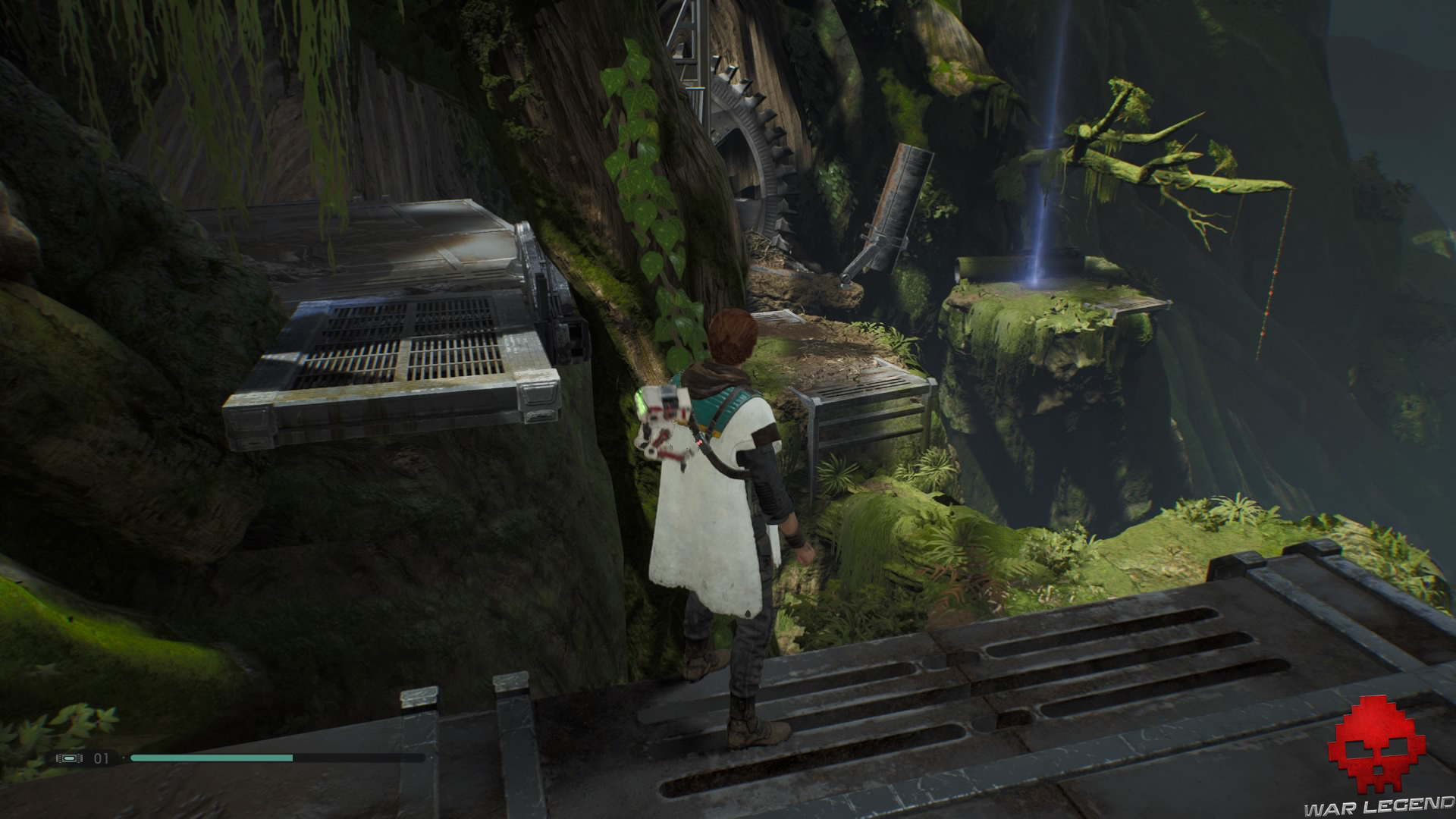 Une fois ramassé, sautez sur le bumper sur la gauche, puis une nouvelle fois sur un autre bumper afin d’atteindre le point de rendez-vous avec Tarfful.