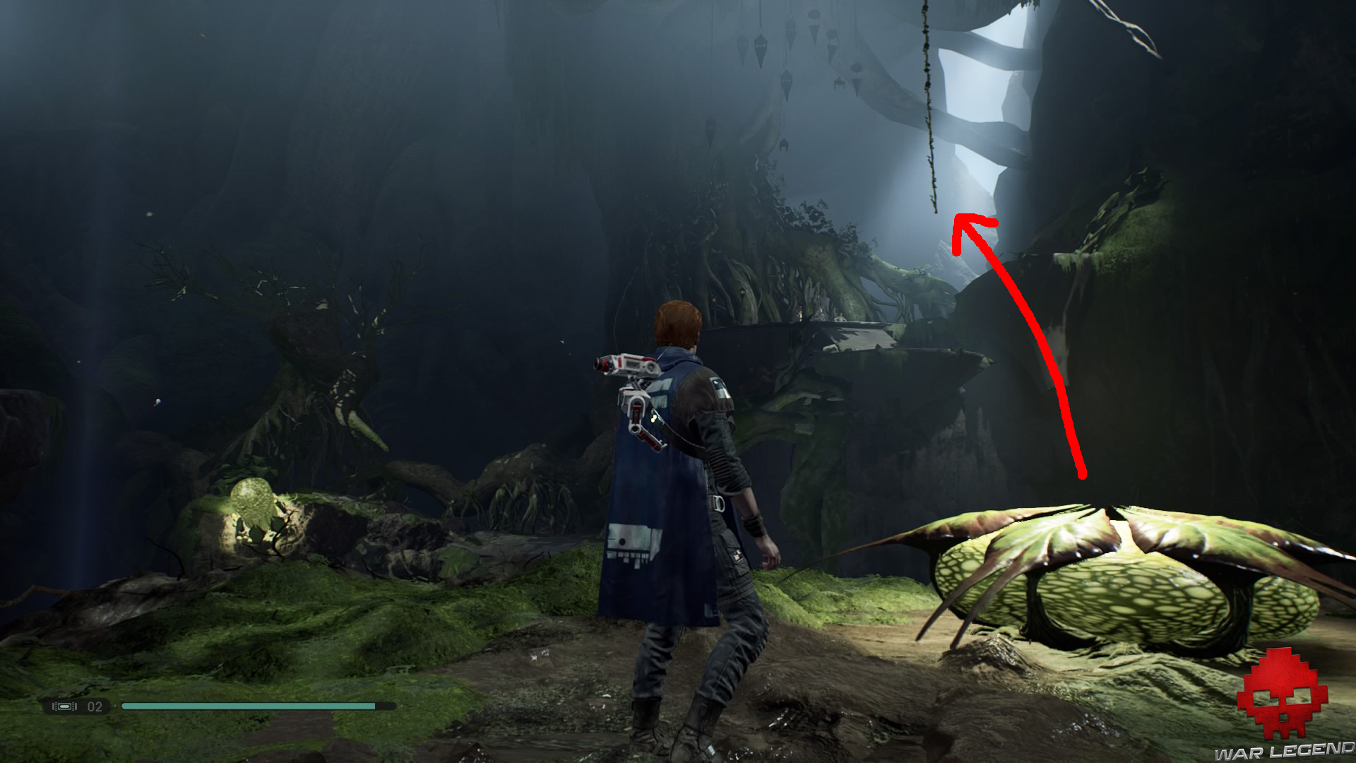 Une fois fait, dirigez-vous vers la liane et grimpez tout en haut.