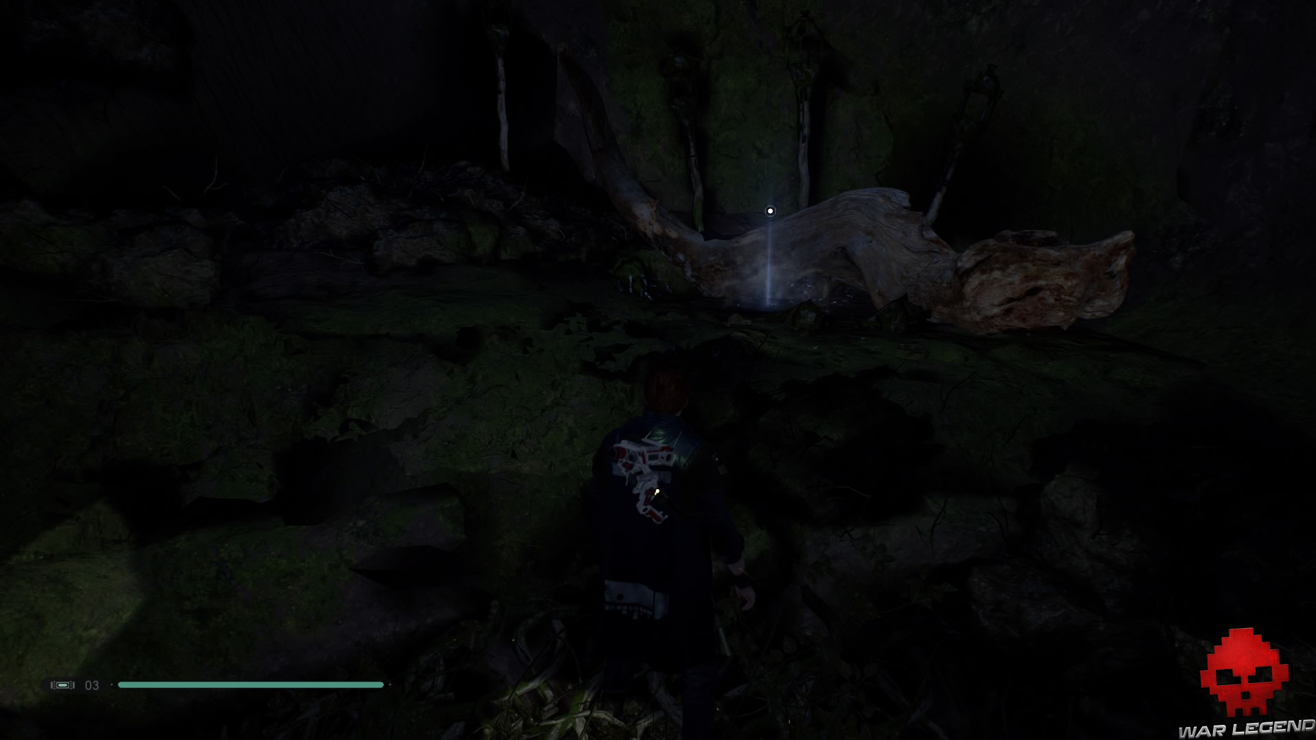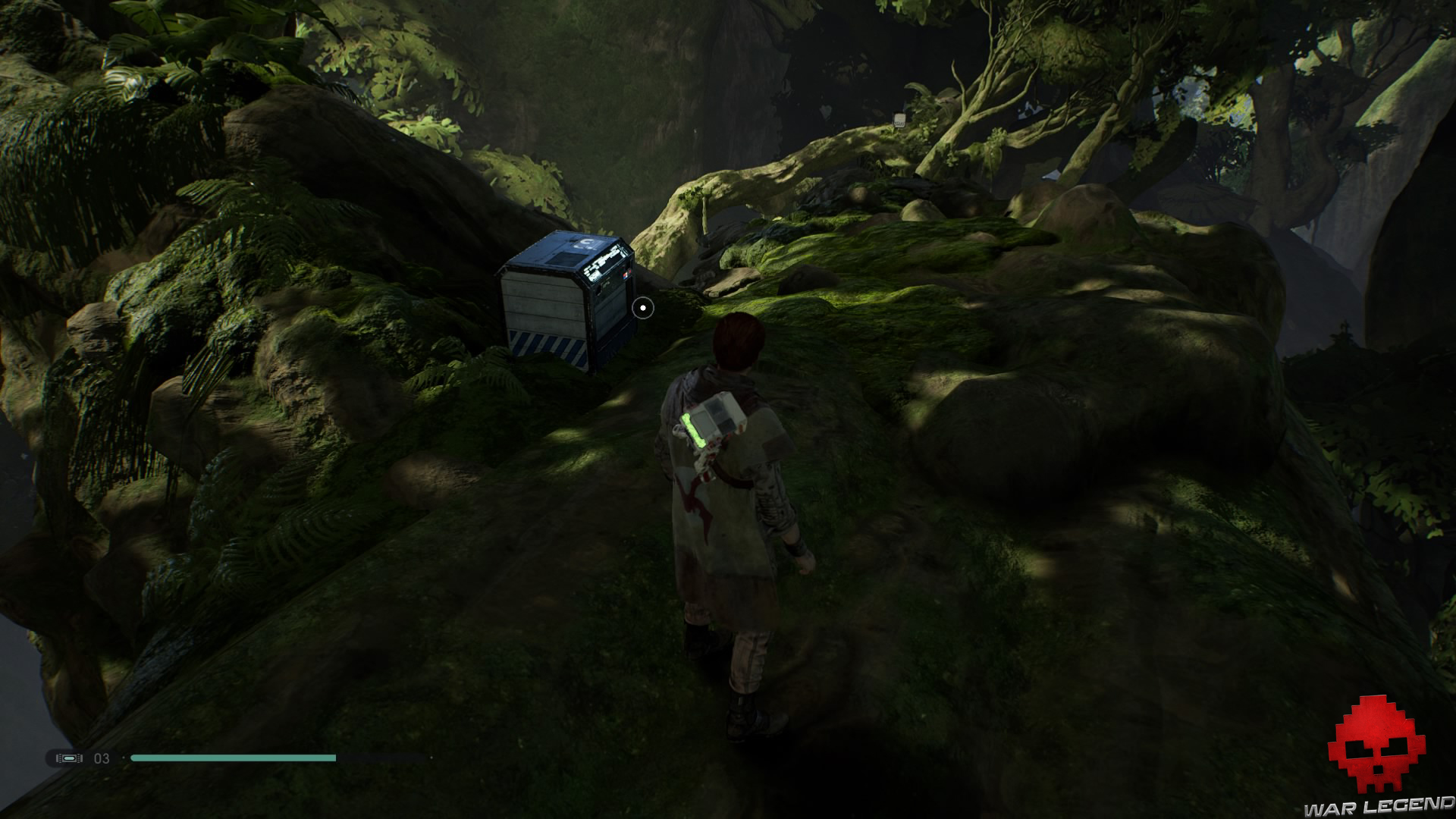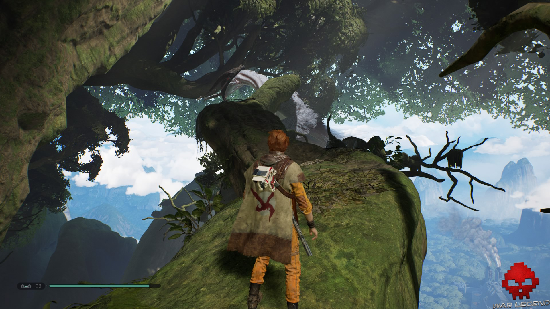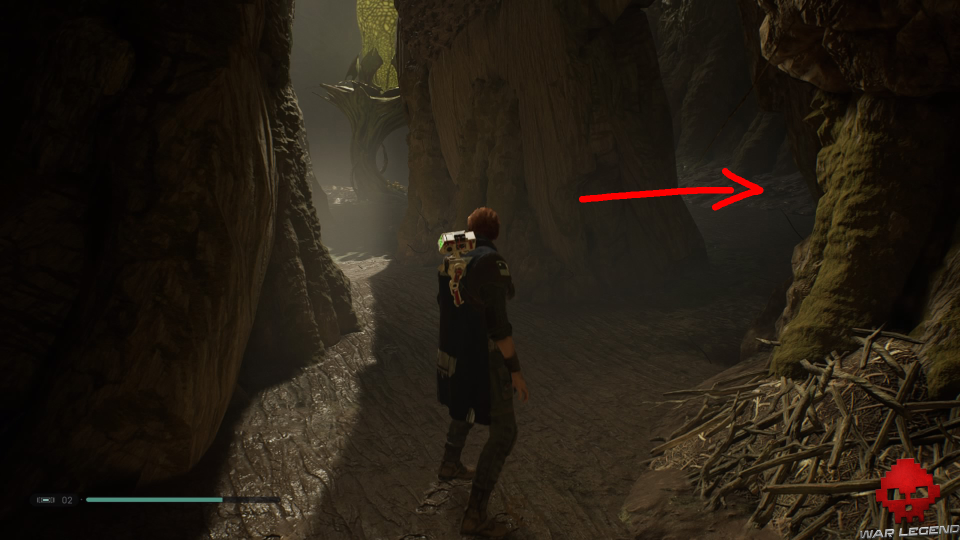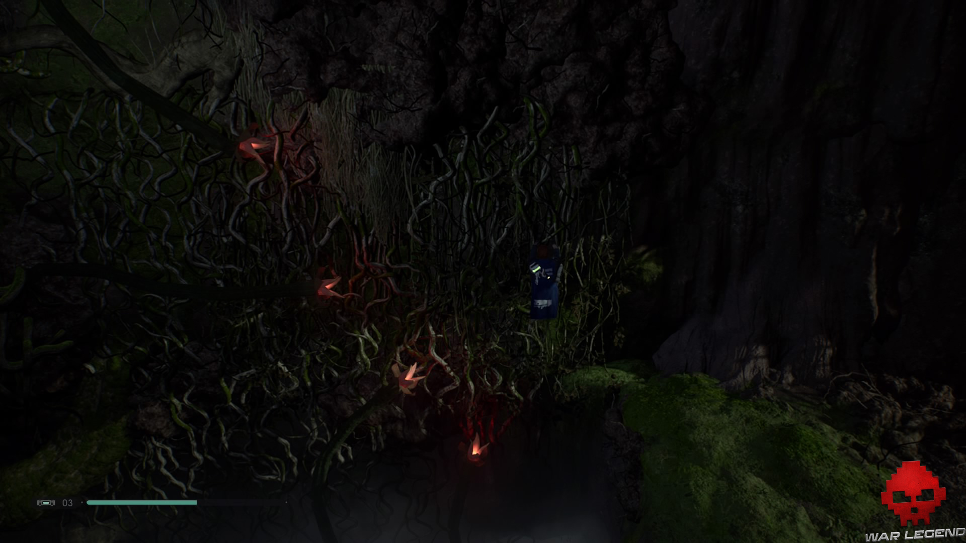 Ensuite, rebroussez chemin et dirigez-vous vers la liane qui pend au-dessus du vide. Balancez-vous et sautez sur le tronc d’arbre suspendu situé de l’autre côté.