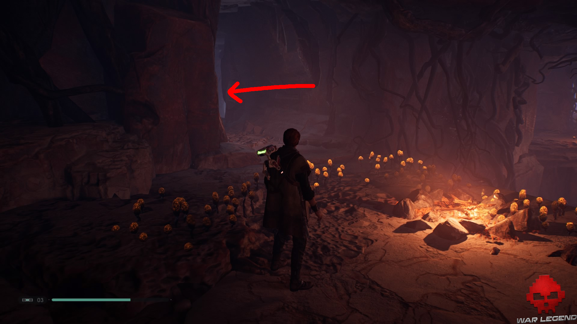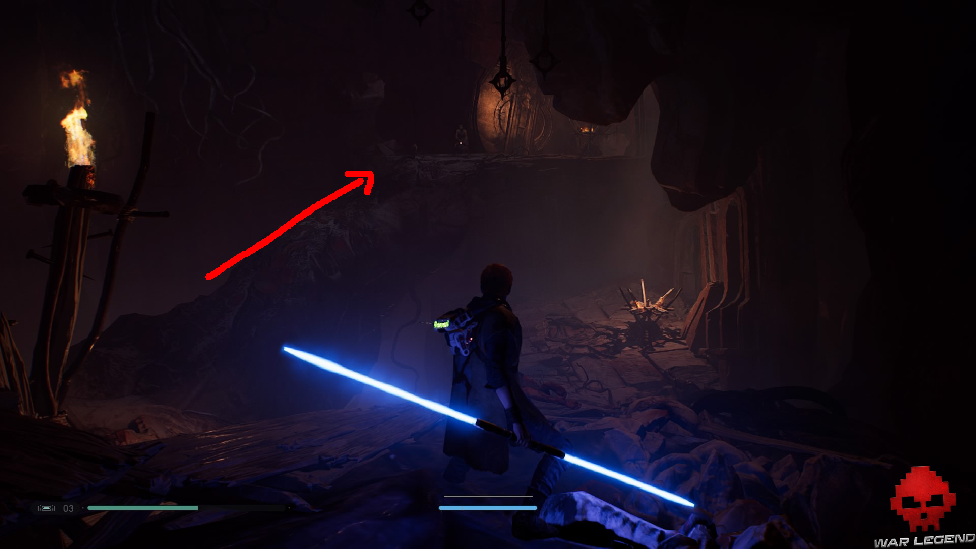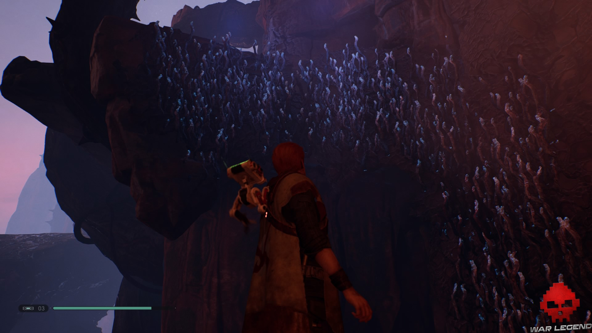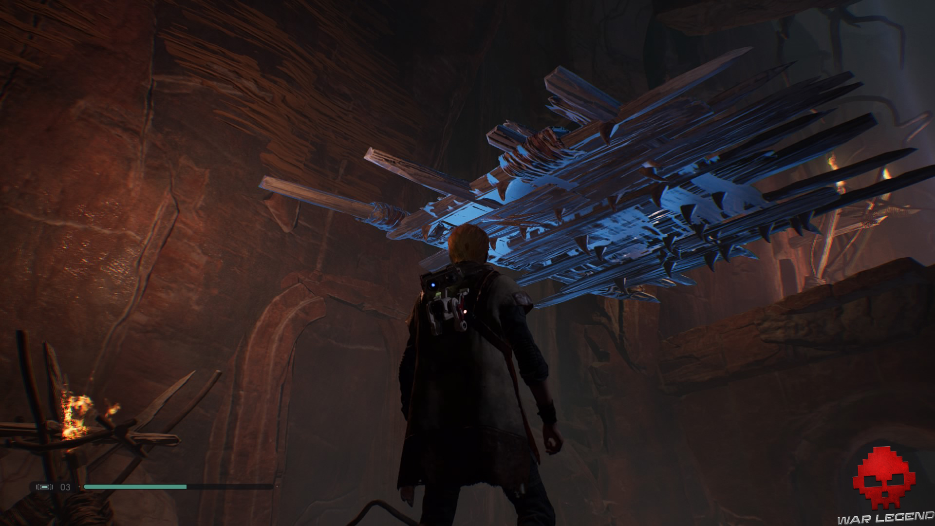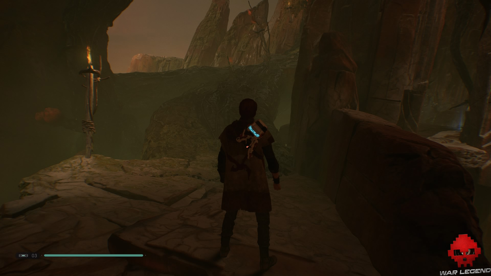 Lorsque vous lui aurez descendu assez de vie, la bête fuira le combat et vous laissera tout le loisir de piller le cadavre du frère de la nuit. L’occasion de débloquer les griffes d’escalade qui permettent désormais de grimper sur les lichens de feu.