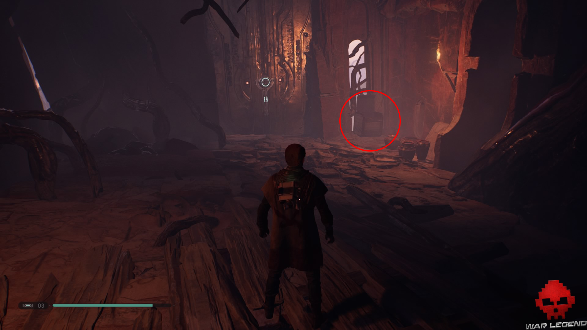 Ensuite, montez dans l’ascenseur afin de récupérer un coffre.