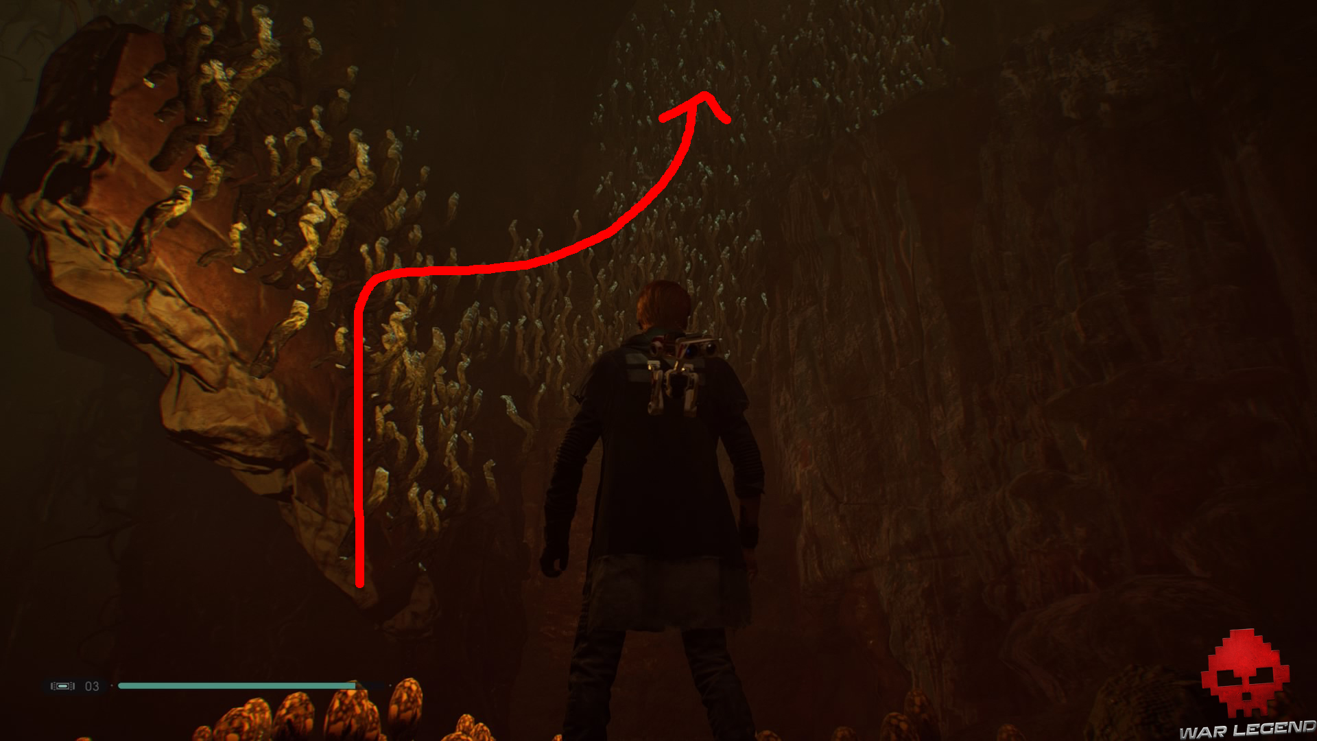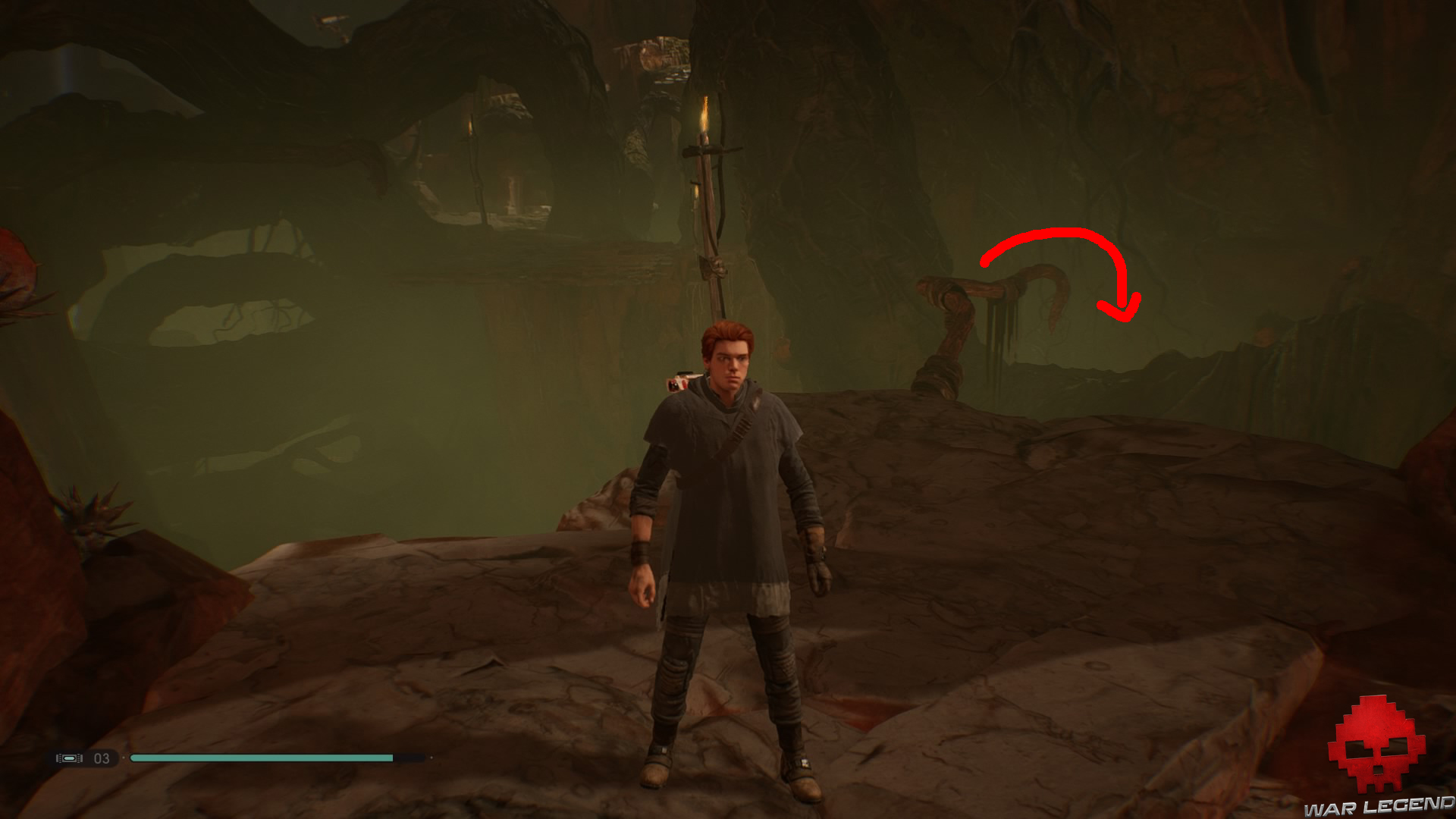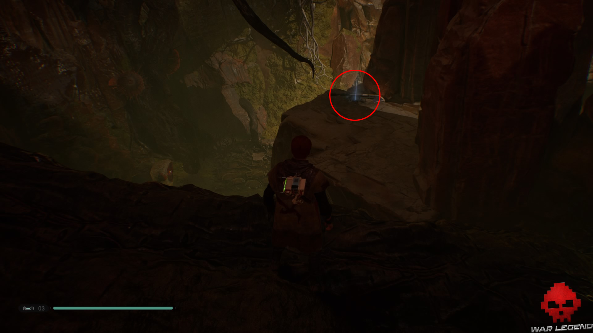 Utilisez votre traction pour la rabattre afin de vous en servir comme mur de substitution et atteindre le point de méditation au-dessus. Ramassez l’écho, puis continuez en direction des racines.