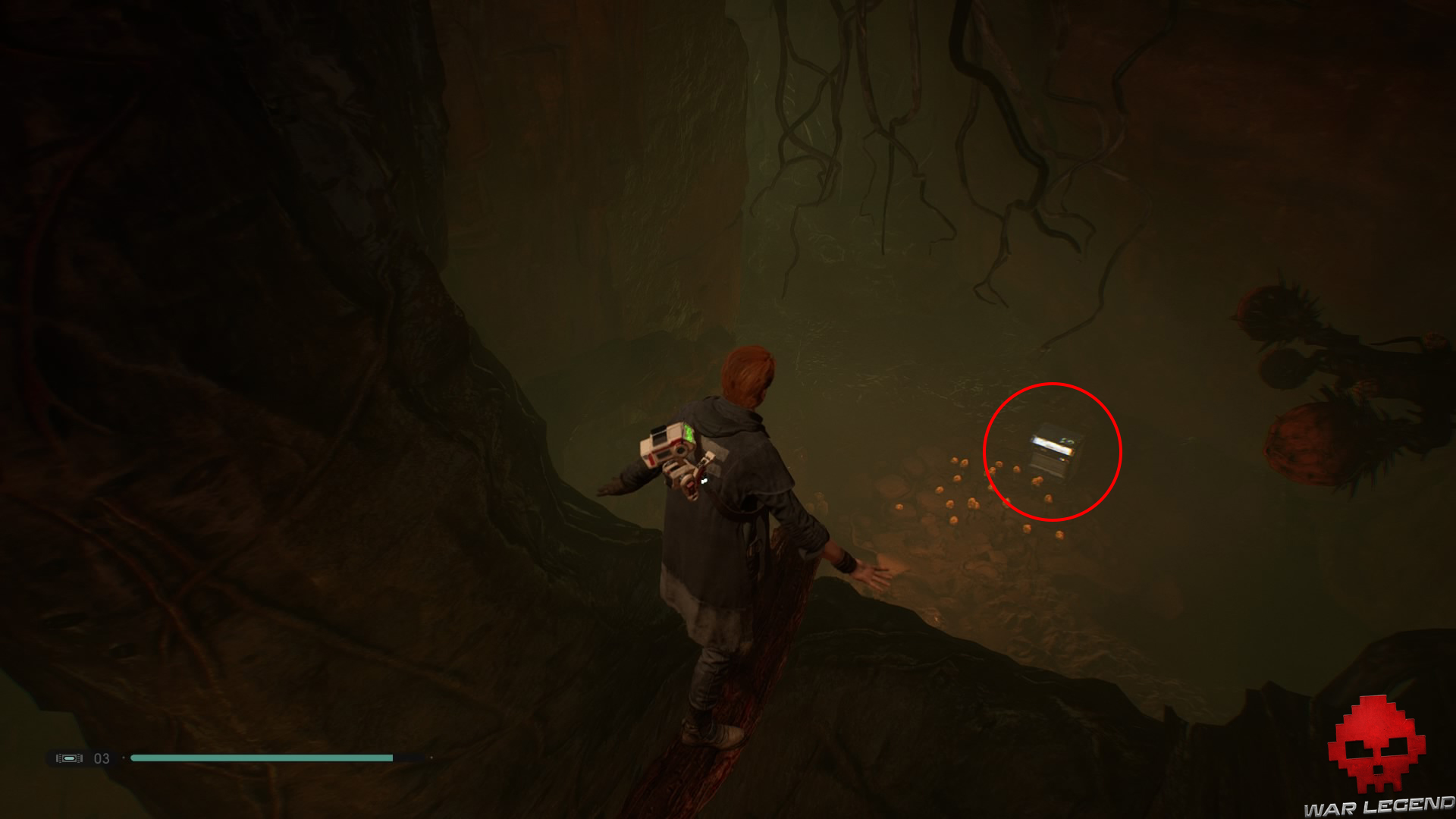 Montez sur la grosse racine, puis sautez à droite pour récupérer un écho.
