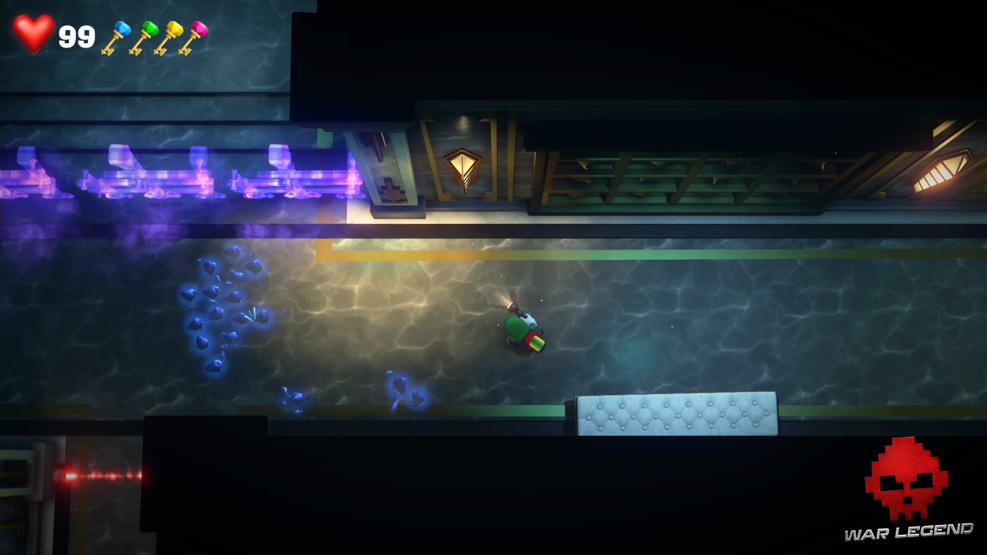 En sortant de la pièce, de nouveaux fantômes vous attaquent. Beaucoup de fantômes. Attention au laser au niveau du sol.