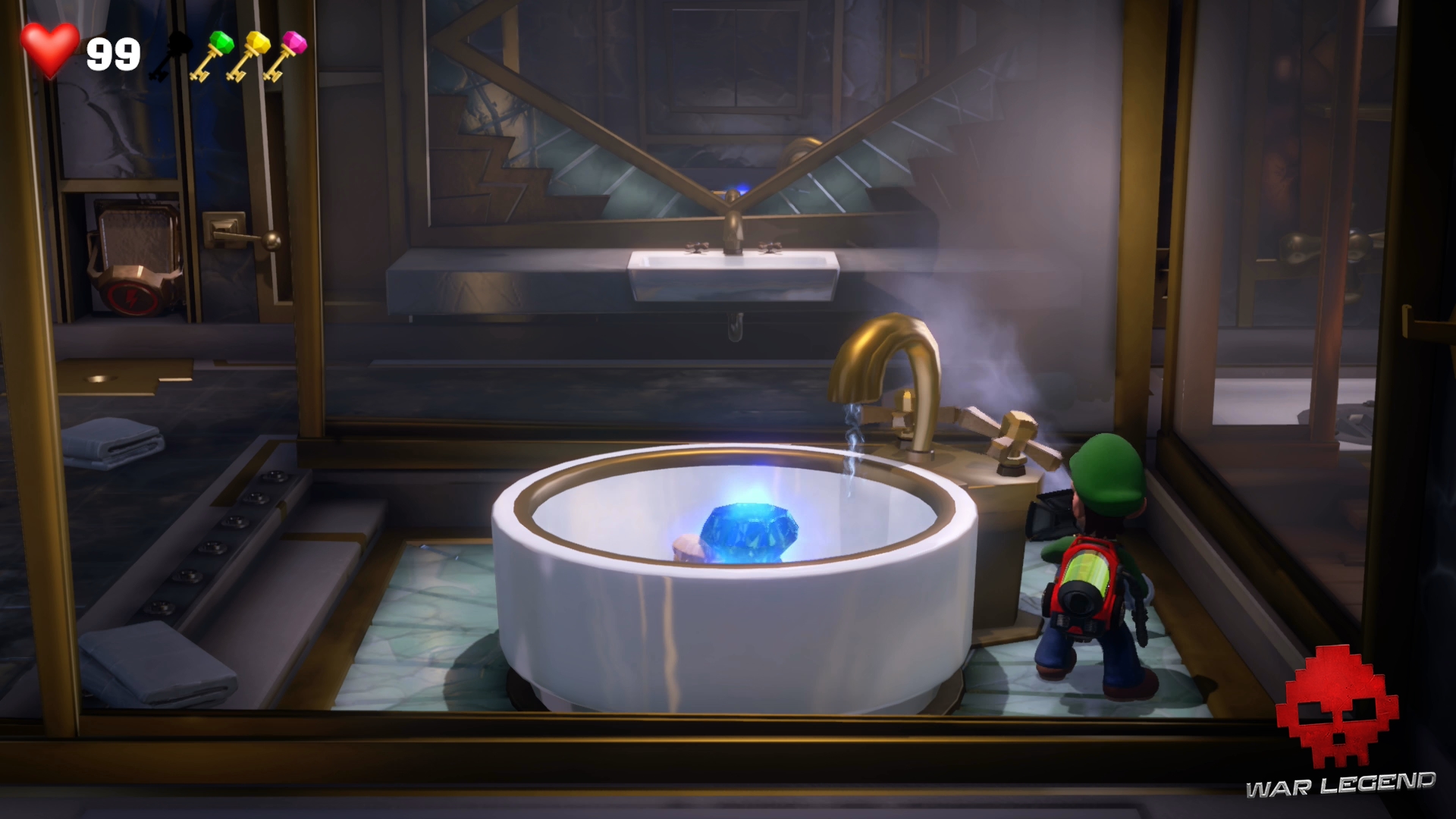 Arrivé à la baignoire, soufflez sur les robinets pour faire flotter la clé bleue. Il n’y a plus qu’à ramasser.