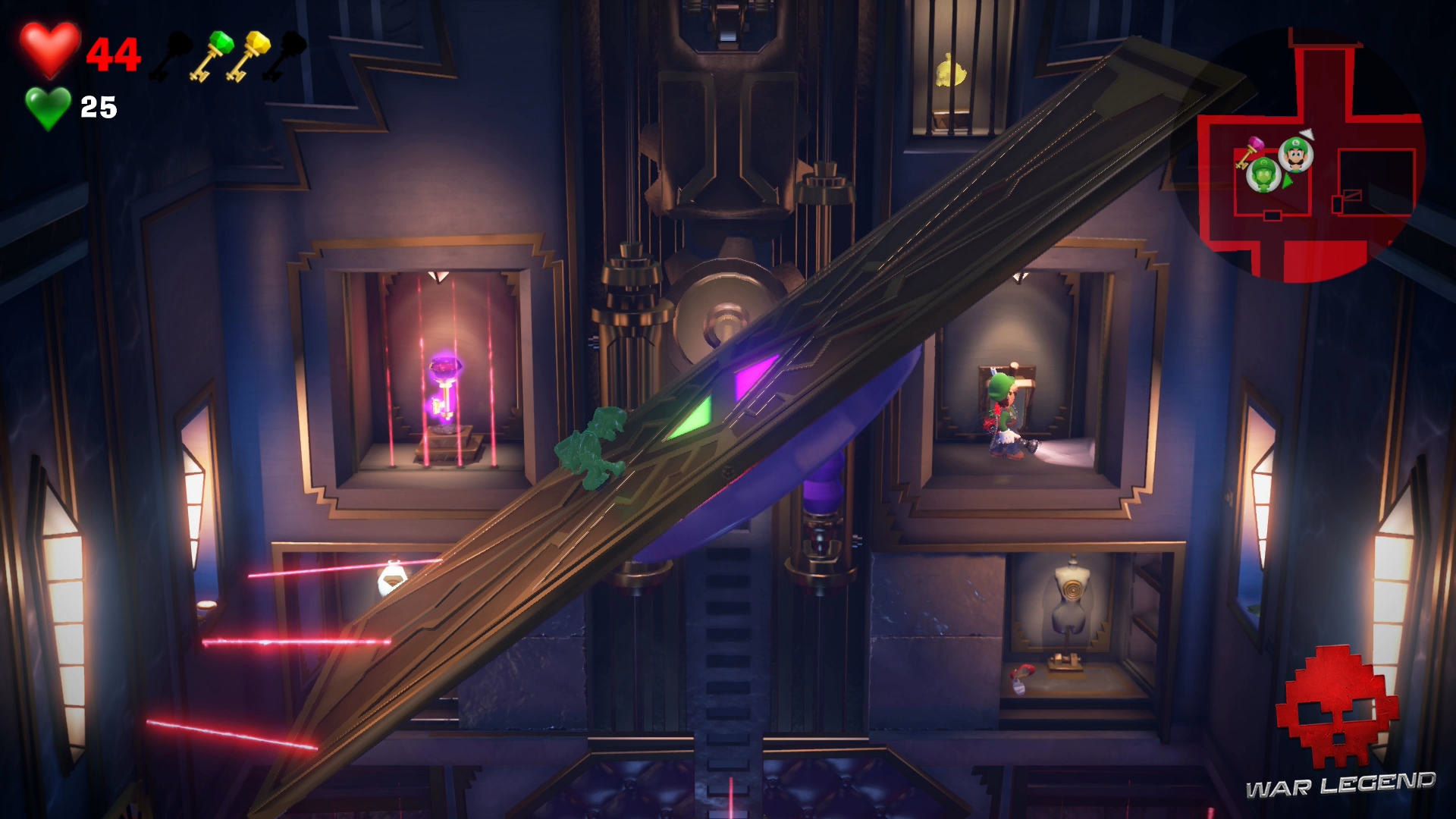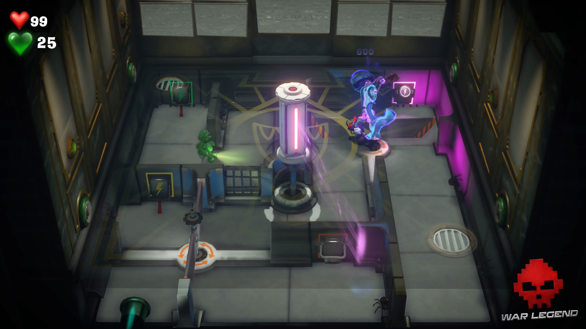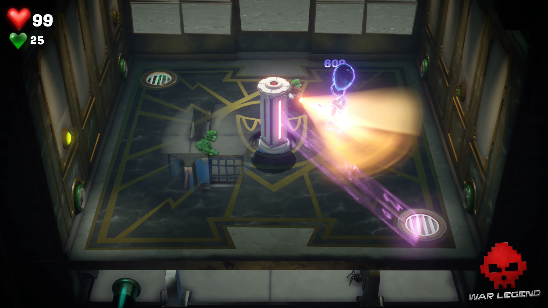 De son côté, Luigi doit esquiver les attaques du boss. Quand Ambre Brusquade plante son miroir dans le sol, il est temps de contre-attaquer avec le Spectroflash, mais il est possiblement risqué de drainer ses points de vie si des murs laser sont encore actifs. N’hésitez pas à lâcher prise si nécessaire.