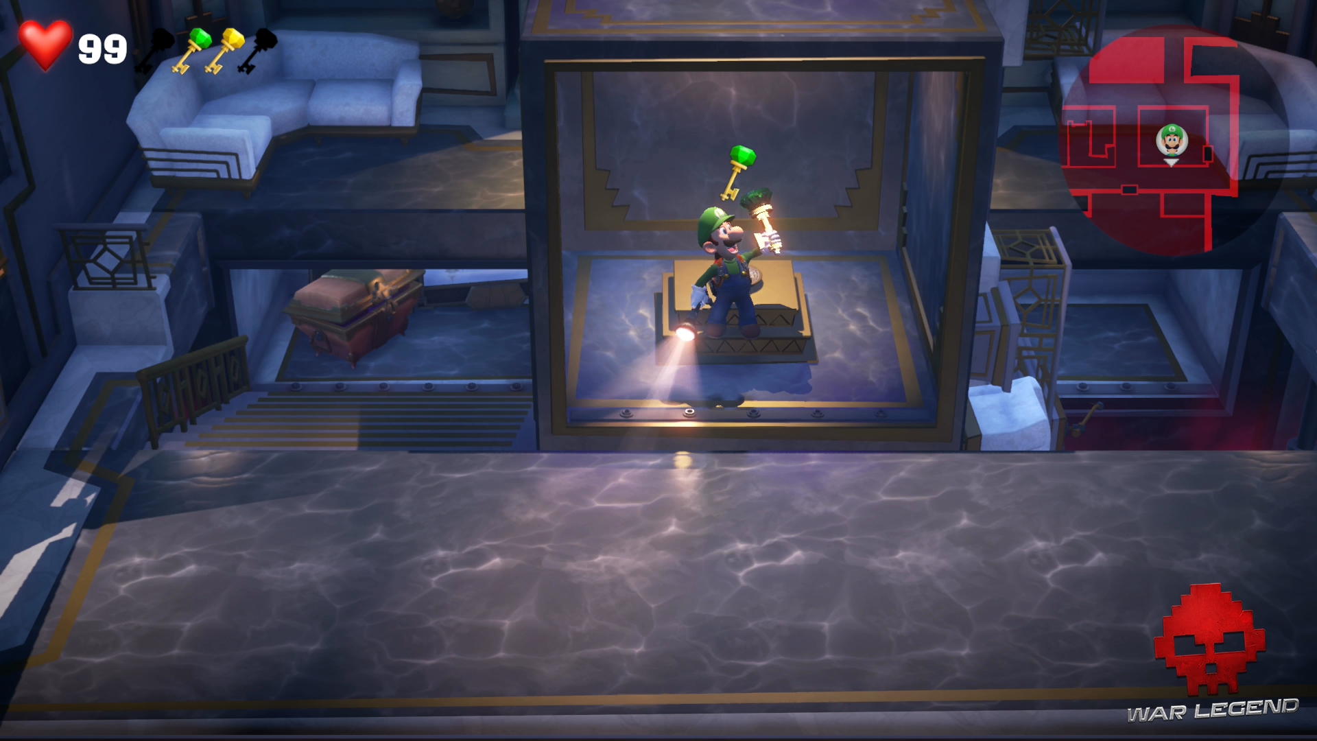Une fois tranquille, dirigez-vous vers le coffre-fort avec la porte en forme du Roi Boo. Placez les clés.