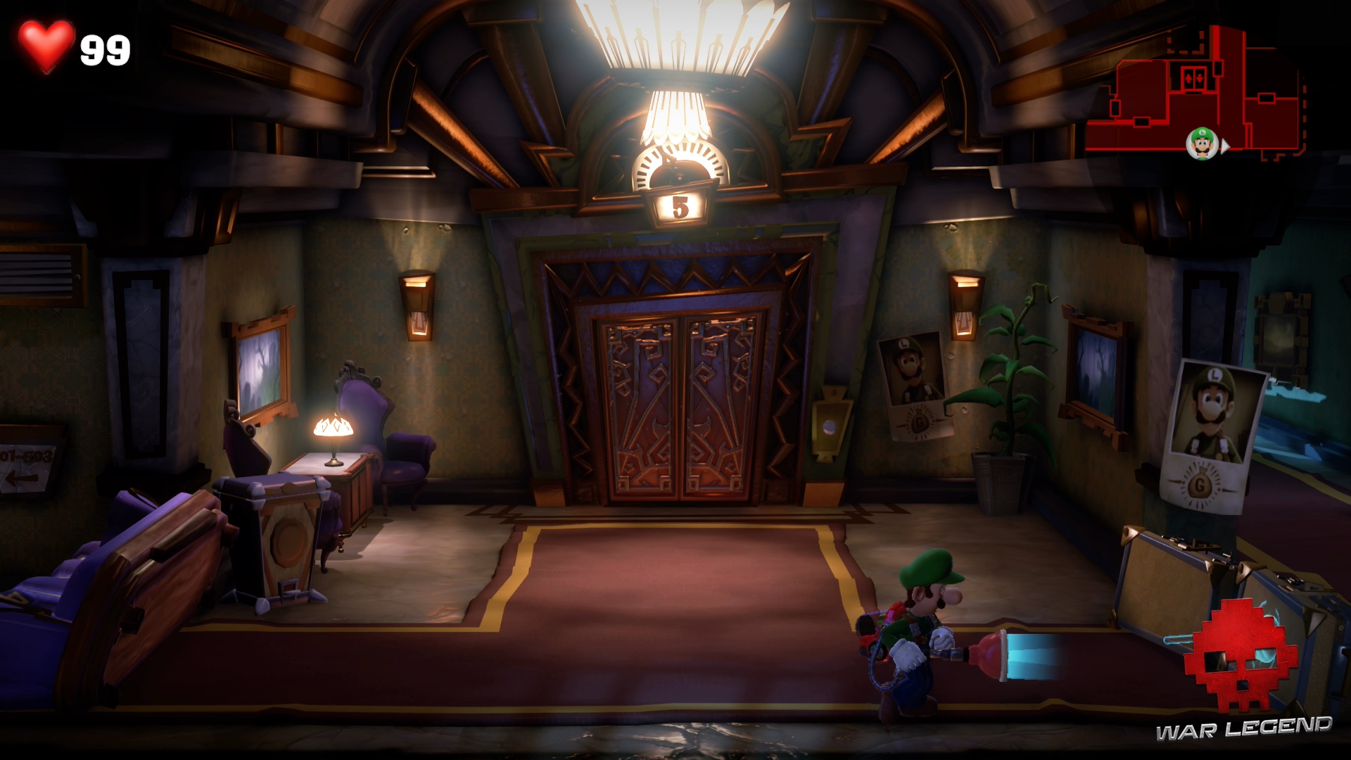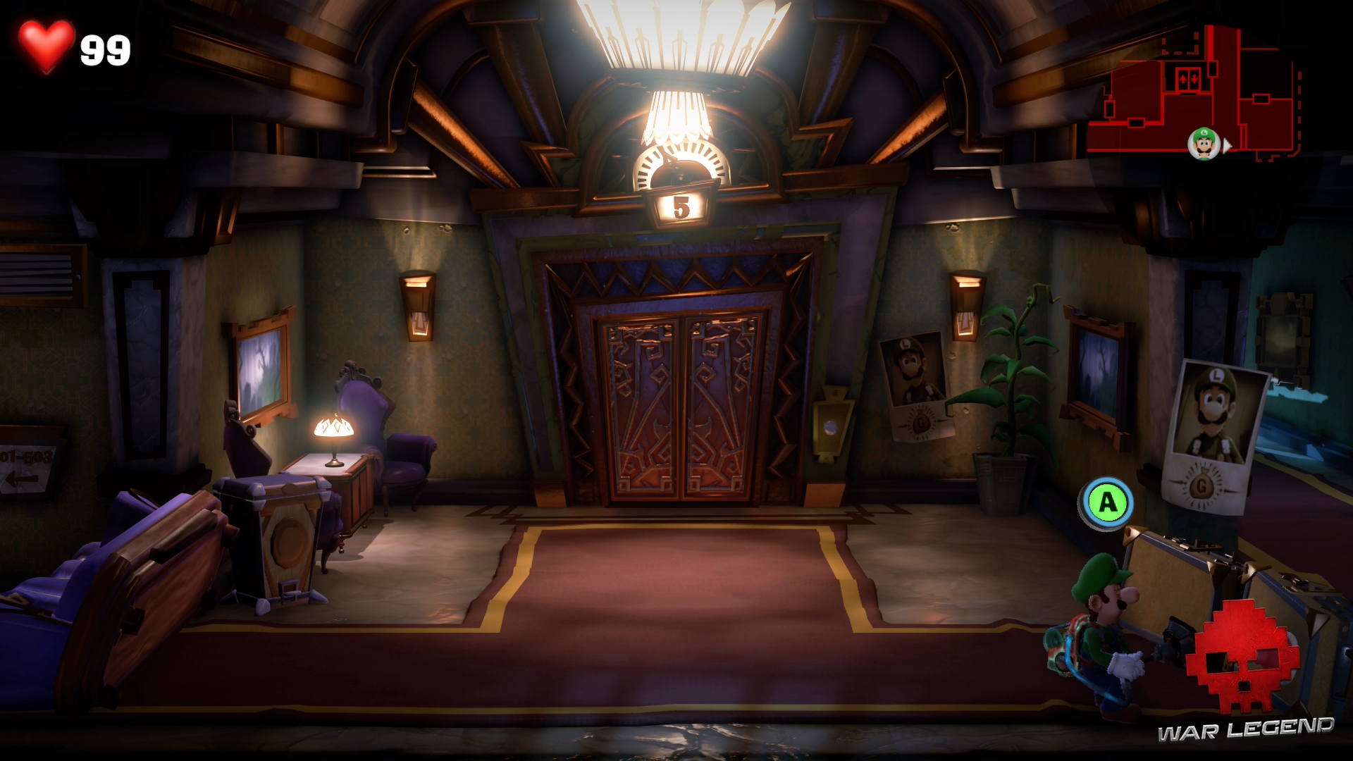 Équipé comme jamais, il est temps de continuer l’exploration de l’hôtel. Rendez-vous à l’ascenseur et utilisez le bouton du troisième étage.