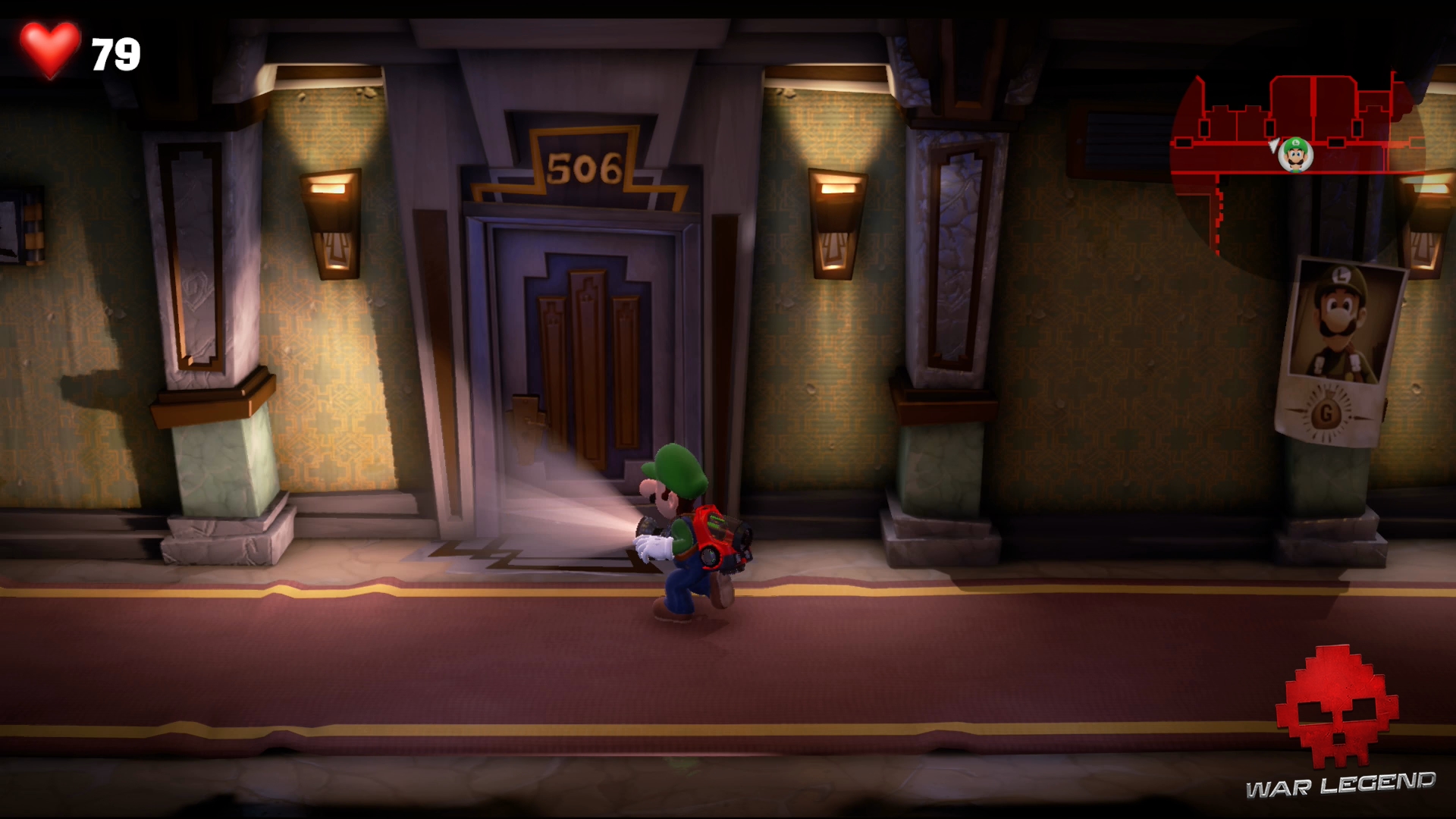 Cette fois, la bonne s’échappe dans le couloir. Impossible de savoir où le fantôme s’est réfugié cette fois-ci… ou peut-être que si. Utilisez le Révéloscope sur la porte de la chambre 505 pour voir sa marque.