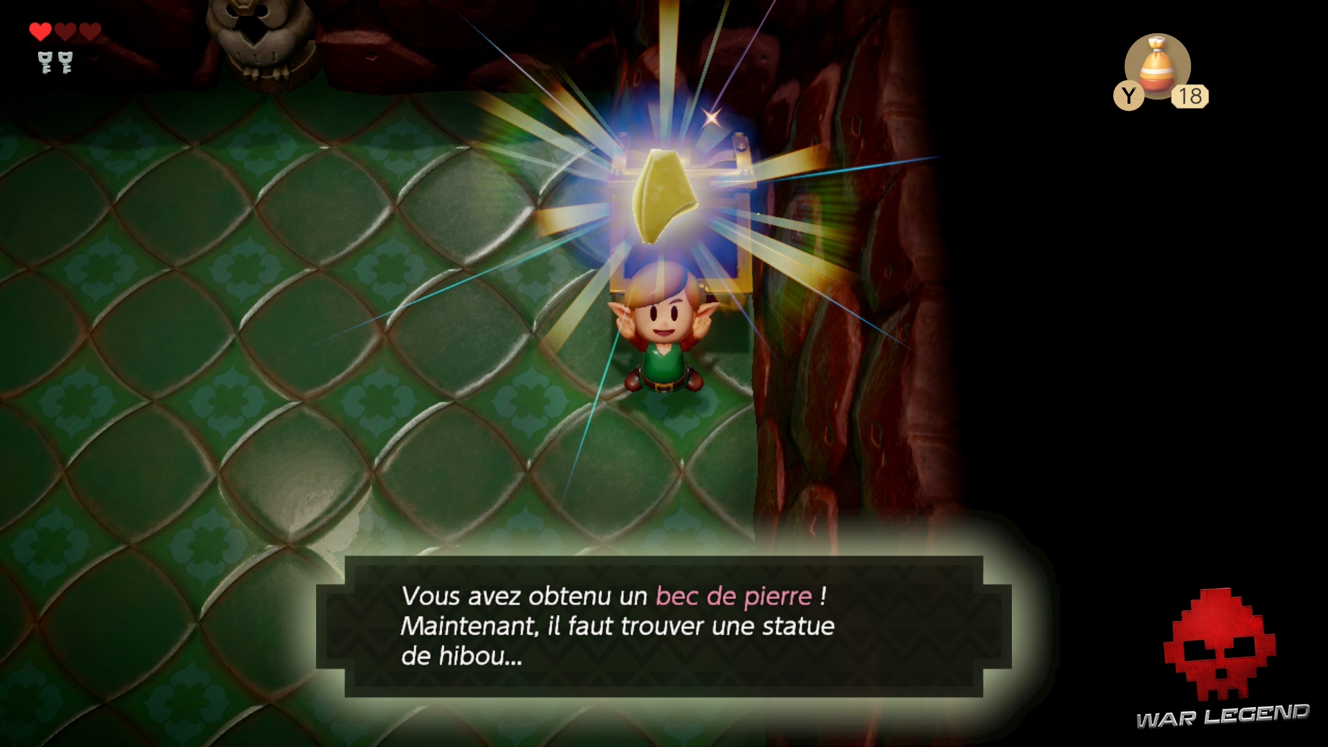 Il existe un bec de pierre par donjon. Il permet d’utiliser les statues du Hibou que l’on trouve dans ces mêmes donjons afin de recevoir des indices sur la marche à suivre. Ils sont souvent essentiels.