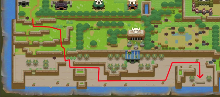 Il existe un passage souterrain secret pour passer de l’autre côté. Trouvez une fougère seule, au sud de la Maison aux Coquillages (près du château) et traversez la grotte. Le Village des Animaux se trouve juste au sud.