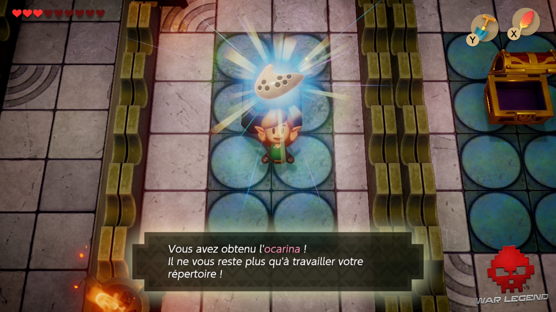 Ouvrez les deux coffres et récupérez 100 rubis ainsi qu’un… Ocarina.