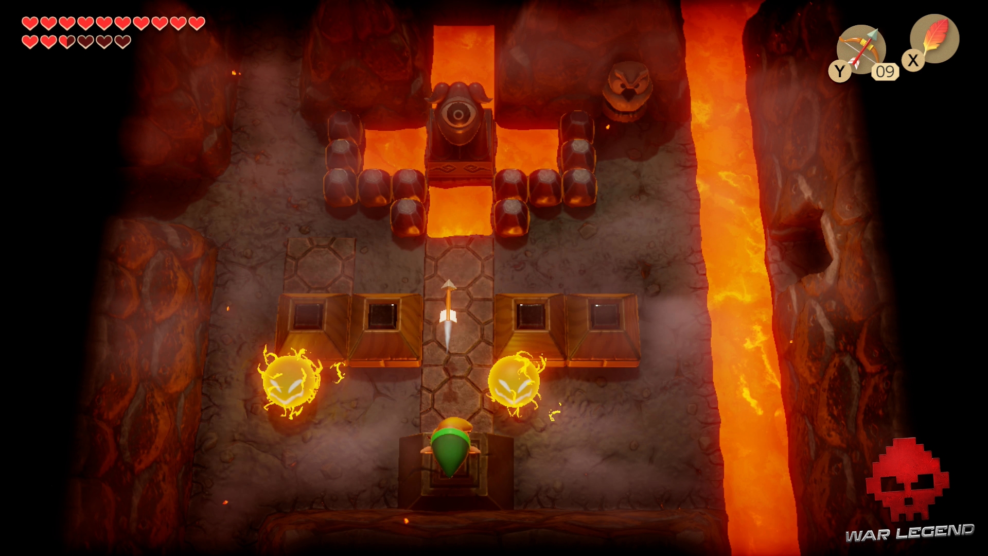 Traversez la lave et montez sur le piédestal en bas. Tirez une flèche sur la statue et récupérez une clé.