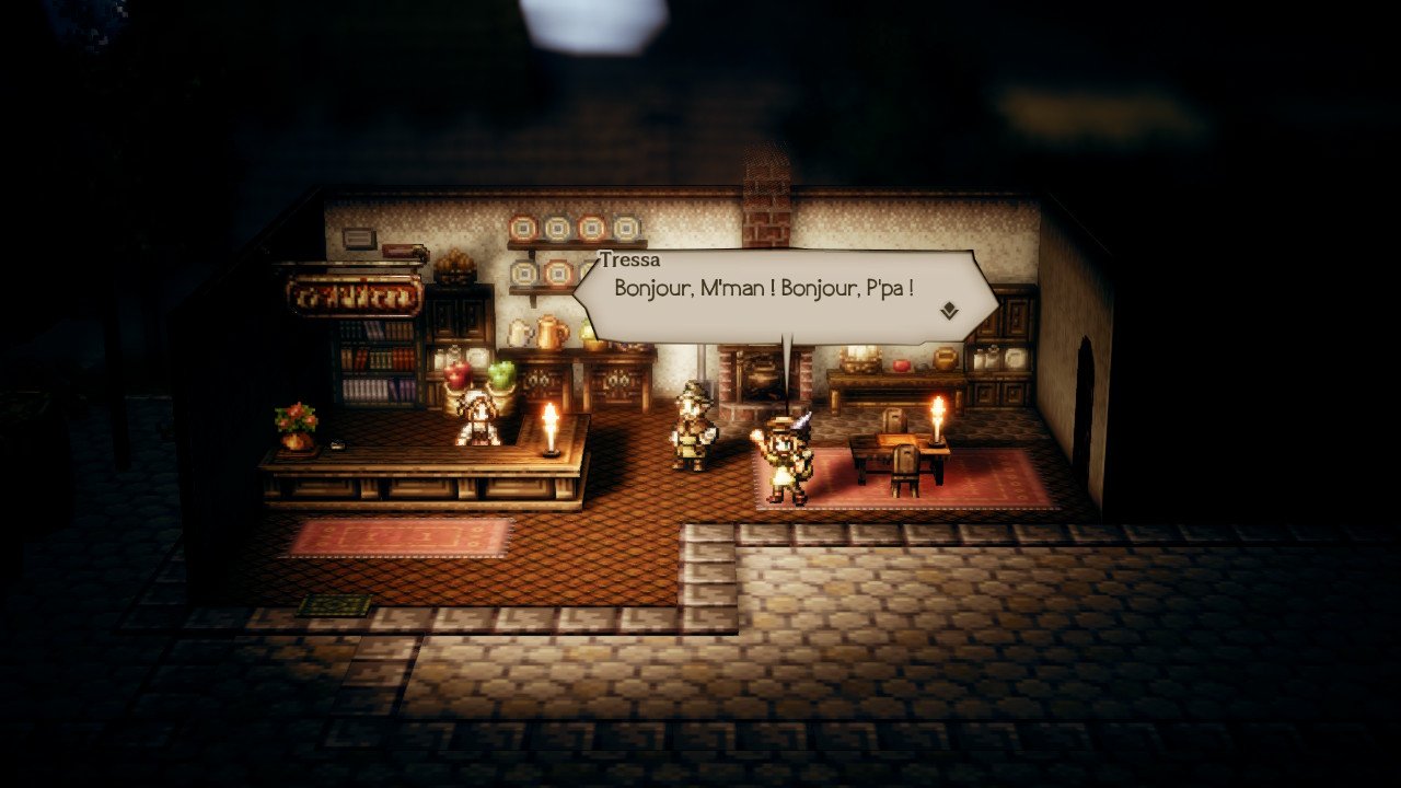 Du coup, quand on lance Octopath Traveler pour la première fois, on a cette furieuse sensation de déjà vu… et c’est voulu. Des personnages 16bits, de l’interface, de la musique aux dialogues en passant par les décors, c’est comme si on avait pris tous les JRPG de l’époque SNES et qu’on avait compressé tout leur code sur une seule cartouche. Et pourtant, Octopath Traveler possède sa propre personnalité.