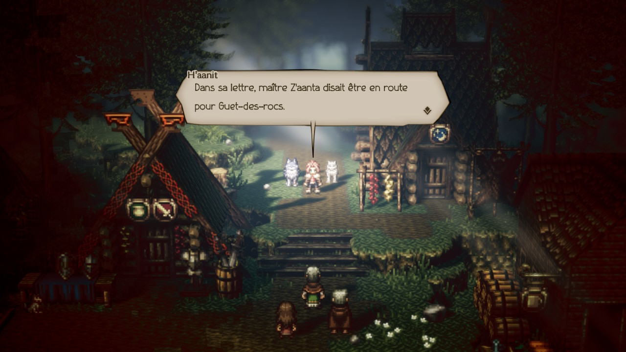 En revanche, il y a bien un truc bancal qui était à deux doigts de tout foutre en l’air, c’est l’absence totale d’interactions entre les personnages (ou sous certaines conditions, et encore). Chaque chapitre est dédié à l’un des membres de votre groupe, mais la narration fera toujours comme s’il était seul. Pire, les autres personnages n’apparaissent même pas en arrière-plan pendant les cutscenes et les dialogues. On n’aurait pas craché sur des petites seynettes une fois à l’auberge, par exemple, mais même pas. Le tout résidera dans l’interprétation qu’a le joueur sur son groupe.