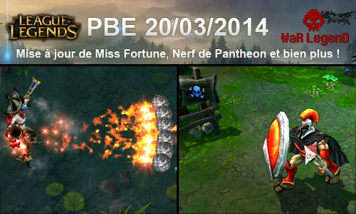 Bonjour à tous ! Encore de nouvelles modifications apportées au PBE aujourd’hui. Au programme mise à jour de Miss Fortune, Nerf de Pantheon, ainsi qu’un ajustement sur Rengar. Avant de commencer la lecture, n’hésitez pas à lire les deux dernières news…