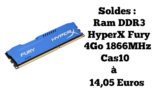 Les soldes continuent avec cette Barrette de Ram DDR3 HyperX Fury 4Go 1866MHz Cas10 à 14,05 Euros chez Amazon.fr. Vous avez besoin de Ram ? Vous voulez passer de 8go à 16Go ? Prenez en deux pour 28,10€ pour +8 ou passer…