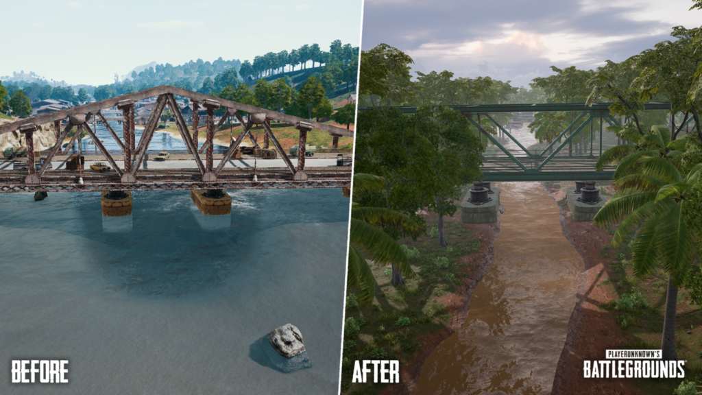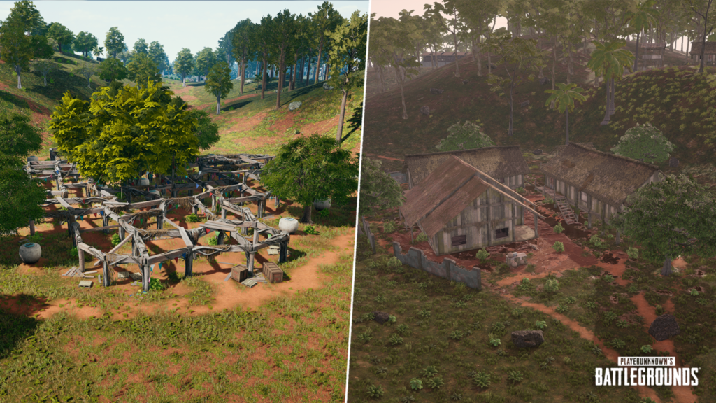 Sanhok était déjà une carte assez détaillée en comparaison avec la première version d’Erangel, mais l’équipe a voulu aller plus loin, ce qui est toujours appréciable pour un jeu qui a une direction artistique souvent terne. De plus, la carte profitera du nouveau système de météo dynamique.