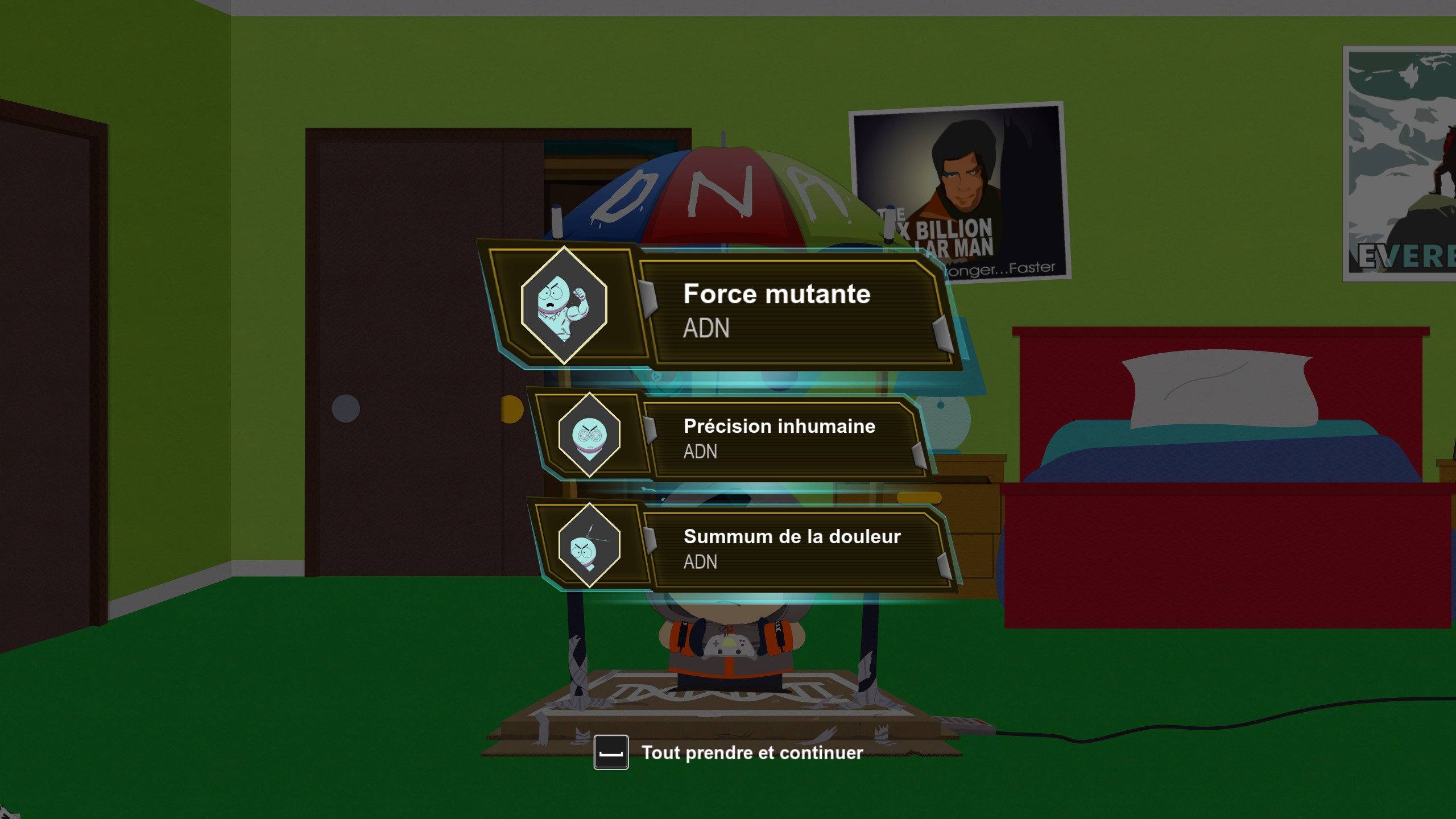 Rendez-vous à la maison de Jimmy. Classi y est installé mais elle refuse de dire quoi que ce soit sur l’affaire des chats disparus tant qu’elle n’aura pas eu ses « médicaments ». Avant de partir en quête, montez à l’étage dans la chambre de Quickie. Ce dernier voudrait vous montrer la dernière innovation dans la technologie de Super Héros.