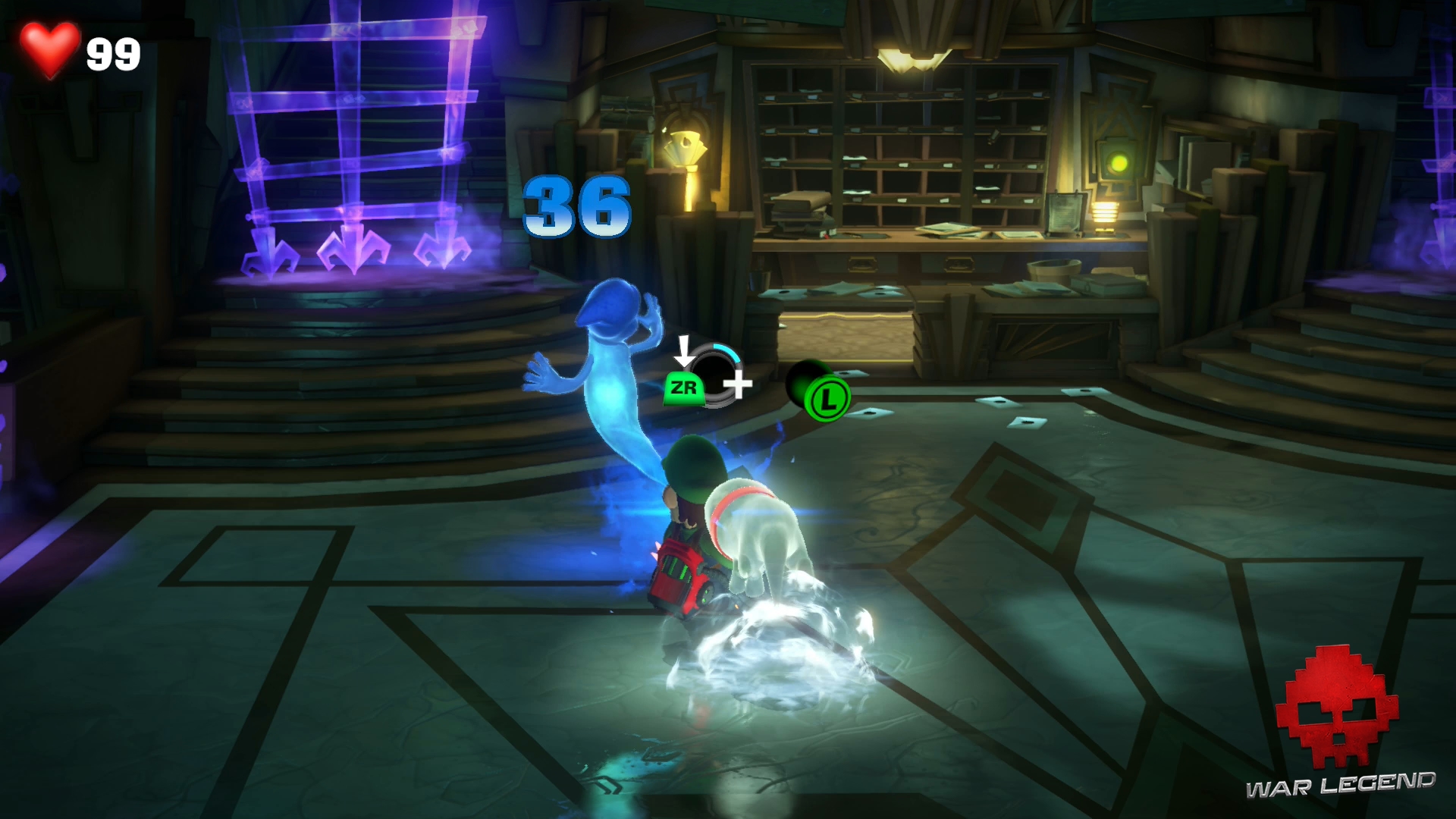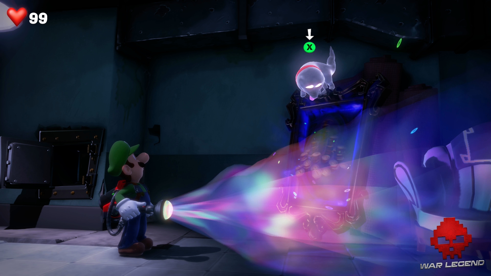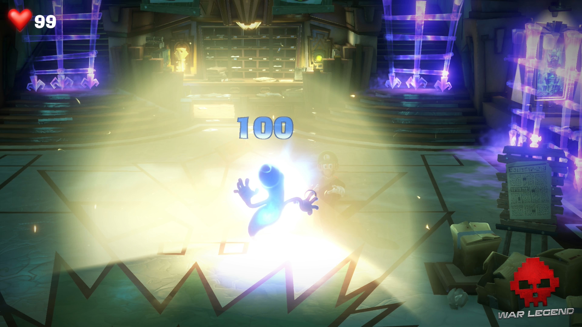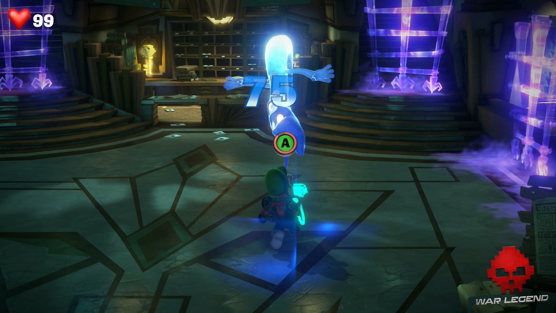 Pour battre les fantômes, flashez-les pour les étourdir et aspirez dans le sens opposé à leur direction. Utilisez A avec le bon timing quand la jauge est pleine pour les balancer contre le sol et faire des dégâts supplémentaires, ou sur d’autres fantômes pour du dégât gratuit.