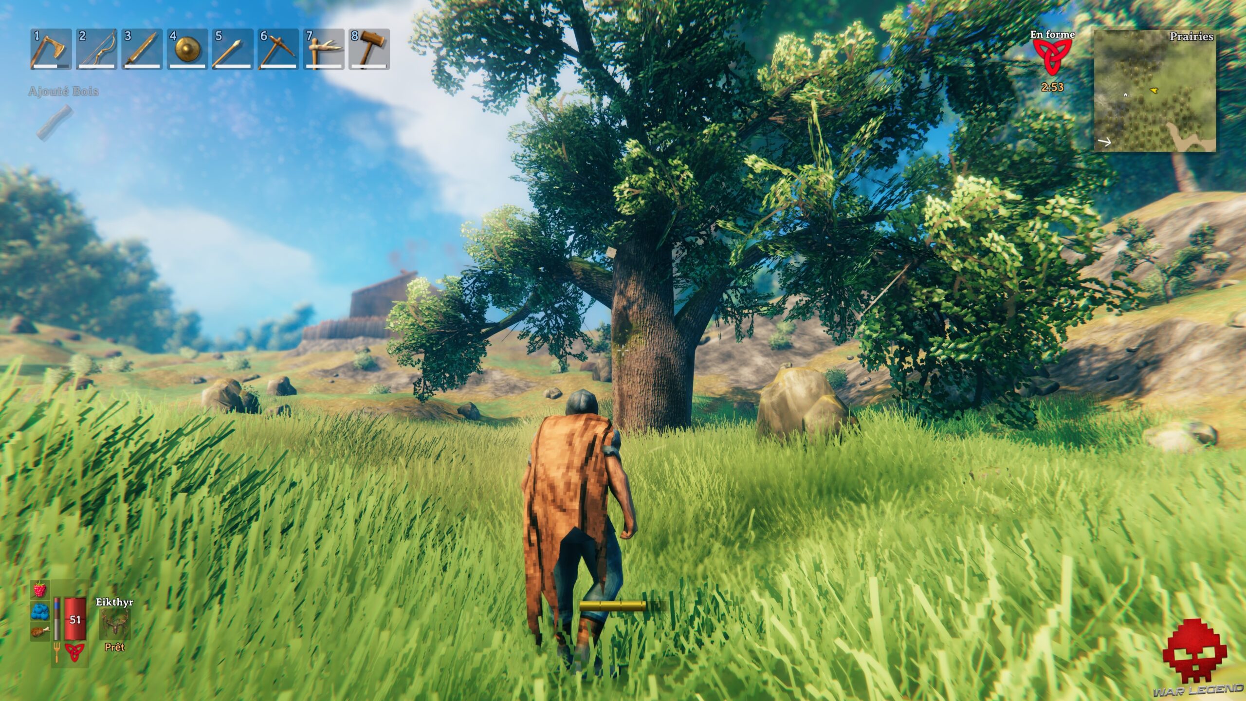 Au début de l’aventure Valheim, vous pourrez dégommer à coups de poing les petits arbustes, puis les troncs avec une hachette en bois et en pierre. Cela vous donnera du bois standard, vous autorisant à créer vos toutes premières constructions.