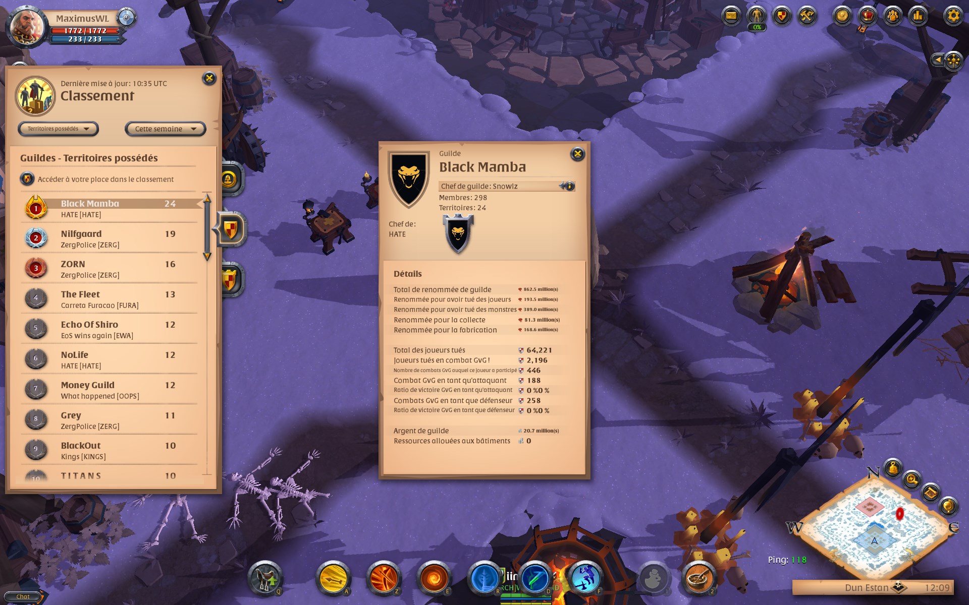 D’un point de vue des territoires, War Legend ne s’est toujours pas remise sur pied et reste derrière au classement. Il est intéressant de constater que des trois guildes citées précédemment seule Nilfgaard, plus solide que jamais, est présente aussi dans le top 3 des guildes possédant des territoires. On note donc Black Mamba première, suivie de près par Nilfgaard et Zorn. On constate également que Money Guild, auparavant puissance incontournable et incontestable est reléguée en 5e place en renommée et 7e place en territoire. Gageons néanmoins que celle-ci n’a pas dit son dernier mot et ne saurait tarder à revenir en force.