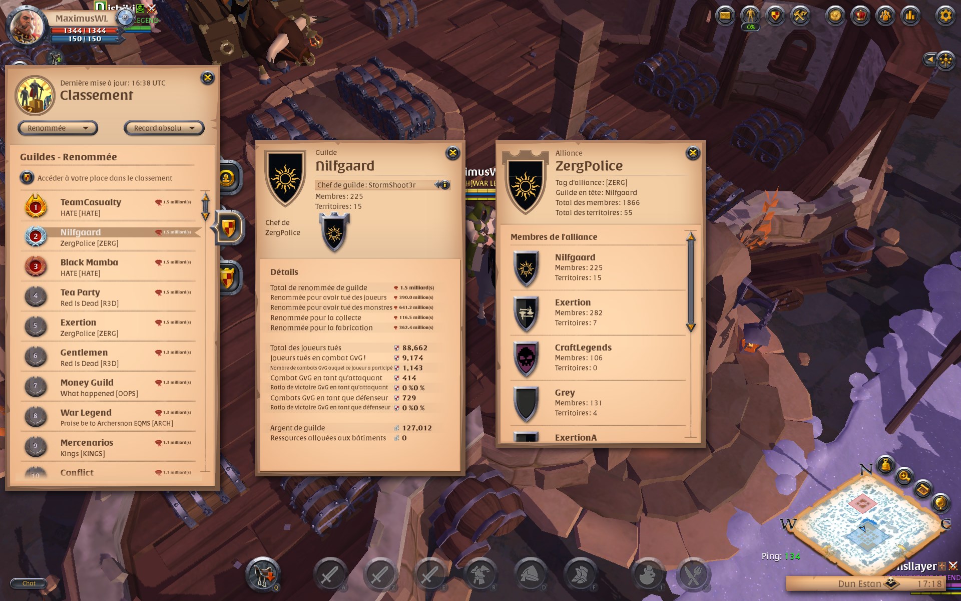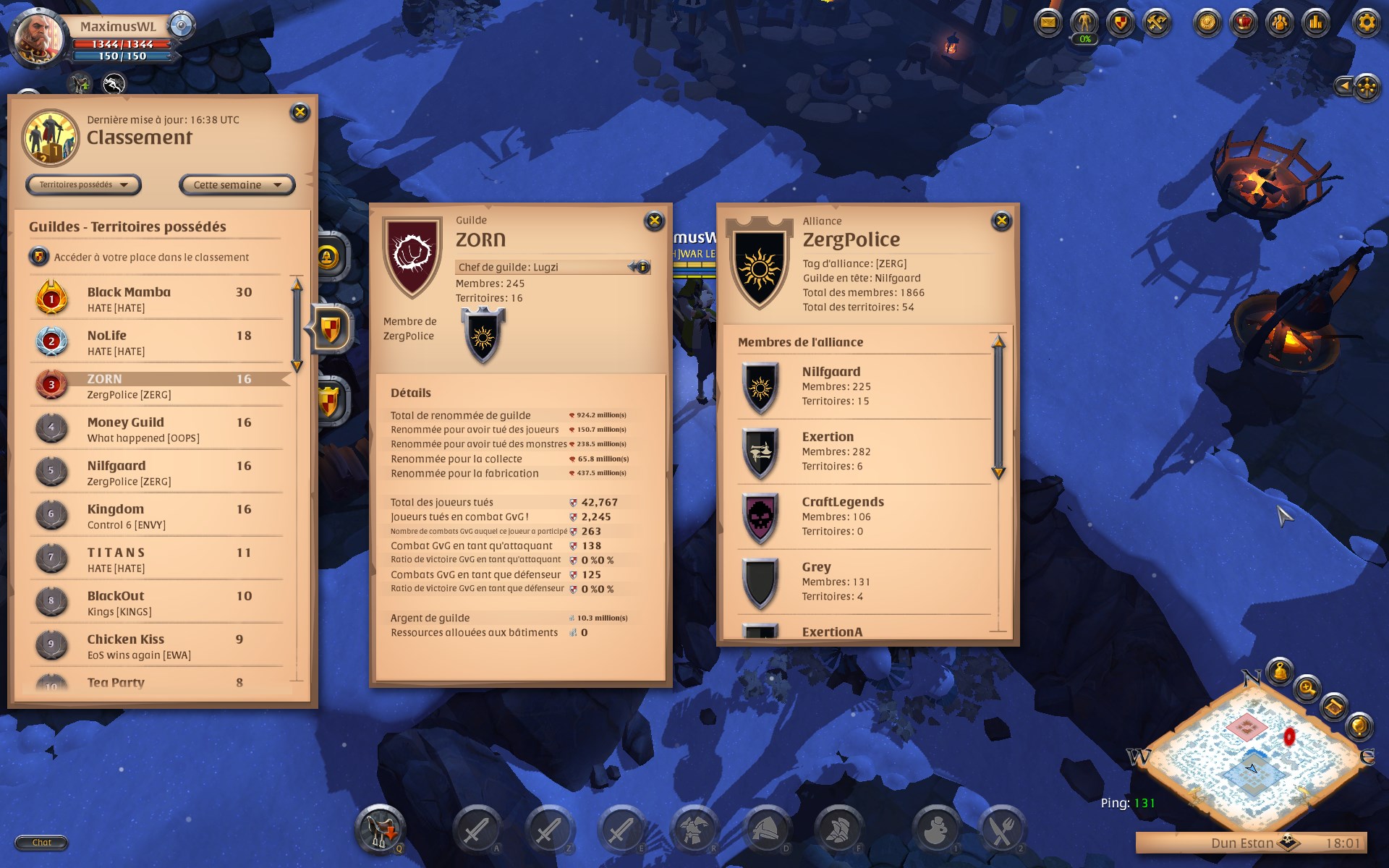 En terme de territoires, justement, c’est toujours Black Mamba et No Life qui tiennent la tête du classement. Zorn a pris la place de Nilfgaard qui se place désormais cinquième, juste derrière Money Guild qui a récupéré trois territoires pour trois places dans le classement. On constate que la Mercia est toujours instable avec des guildes très puissantes qui se partagent la zone. Les deux autres régions sont pour le moment moins contestées, mais une fois la Mercia stabilisée, il n’est pas impossible que les forces en présence souhaitent s’étendre plus loin.