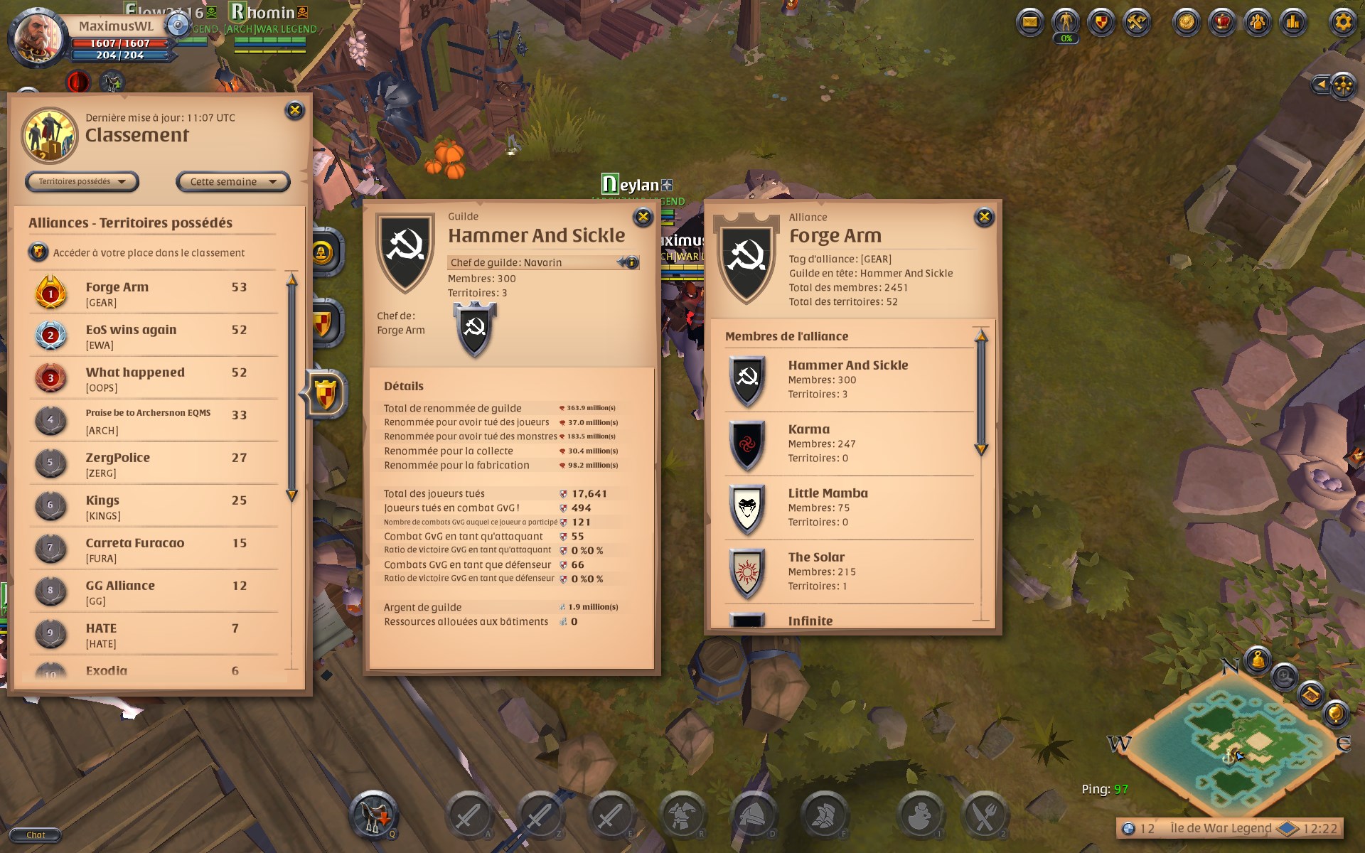 War Legend Swarm de son côté est assaillie par de nombreux ennemis qui la forcent à sonner la retraite pour l’instant. L’accent est mis sur l’alliance afin de venir déstabiliser une Money Guild en forme et son alliance Oops qui contrôle une grande partie de la zone noire. Un nouveau concurrent fait d’ailleurs son entrée, l’alliance Forge Arm passe première du classement en termes de territoire.