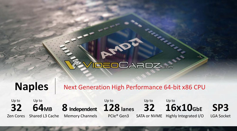 Ce que vous voyez là n’est que le premier pas vers plus de Cores et de Threads. On peut apercevoir le bout du nez du grand frère pour les pros, la prochaine génération Naples, qui devrait pouvoir tenir tête aisément à INTEL. Regardez plutôt : 32 Cores, 64 Threads, 16Mo de cache L2, 64 Mo en L3 et jusqu’à 128 lignes PCI Express ! Les Datacentres et le Cloud bénéficieront également de cette offre, avec des améliorations conséquentes sur leur performance.