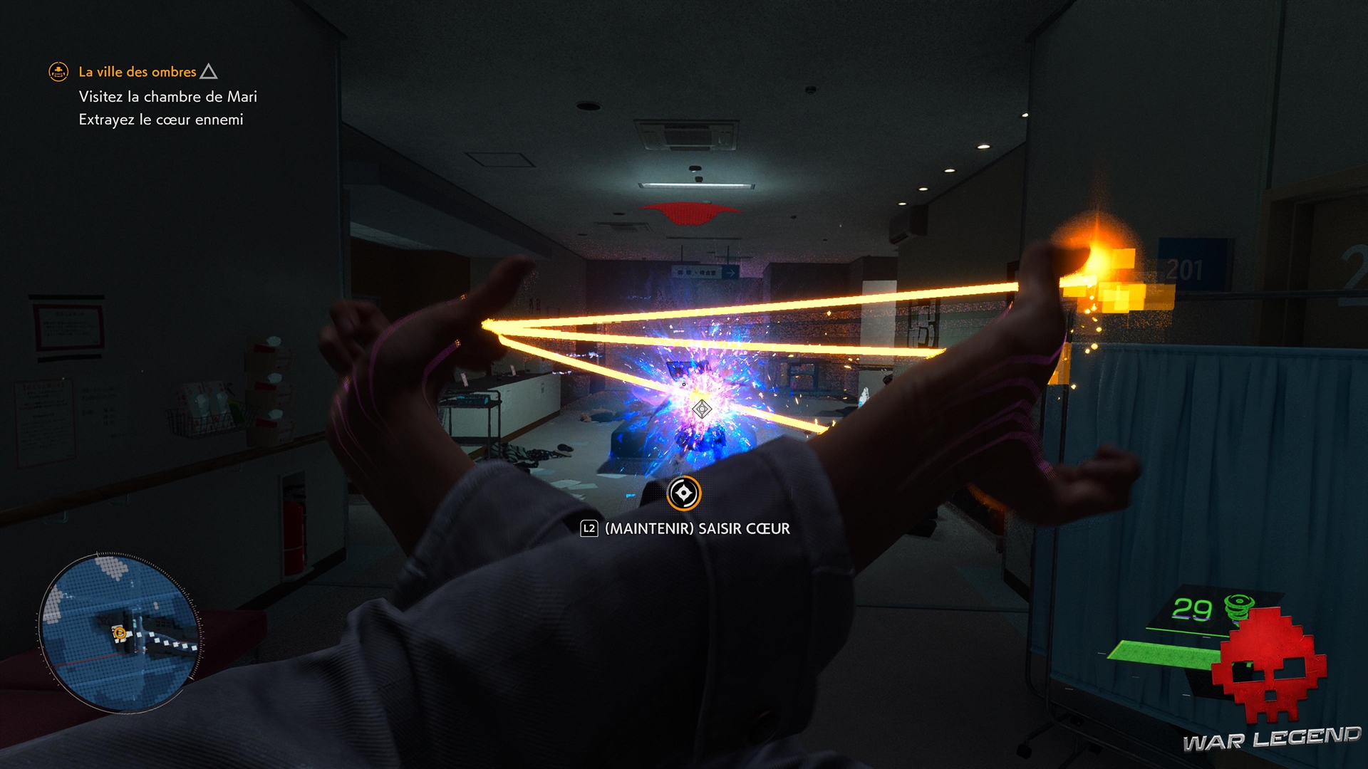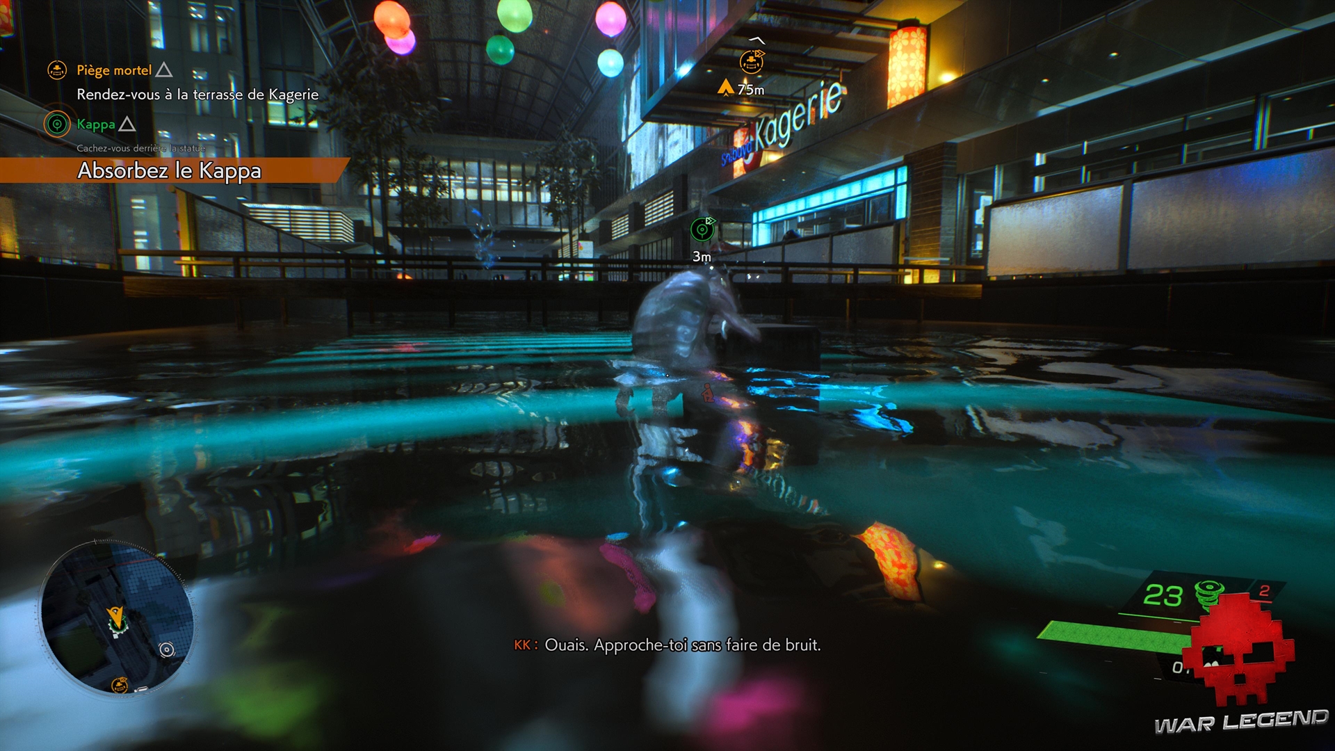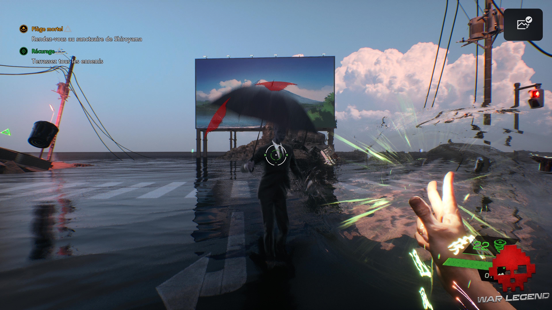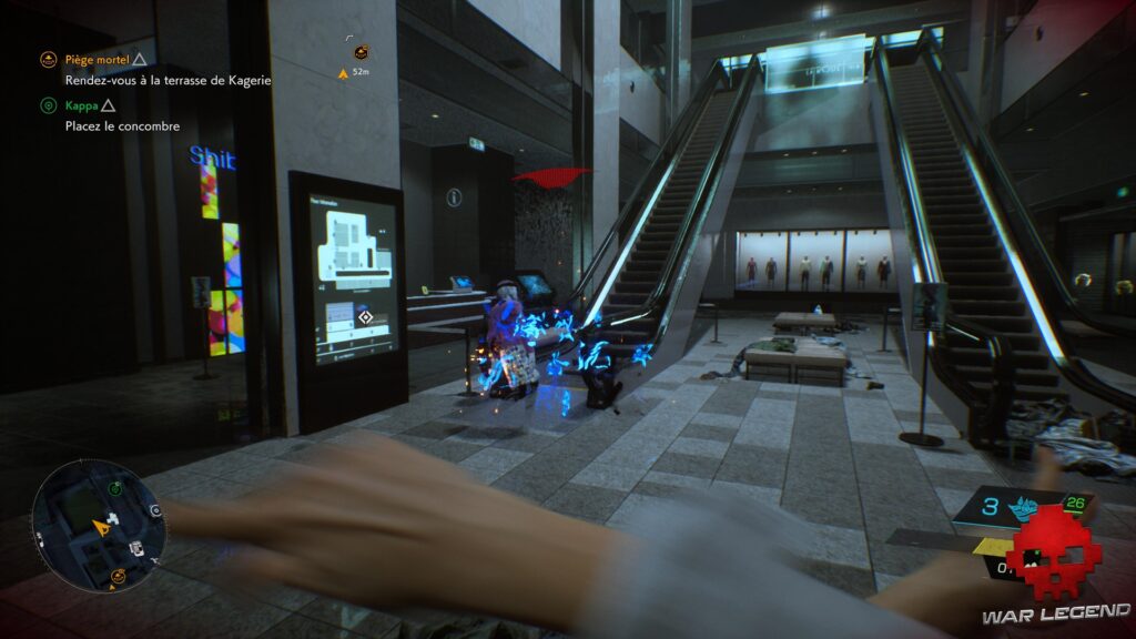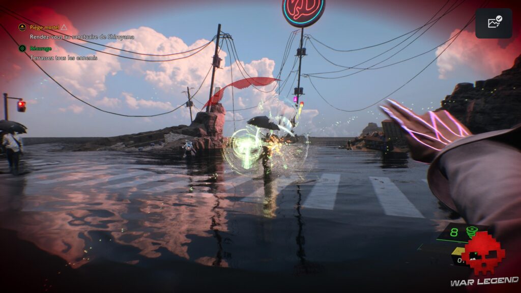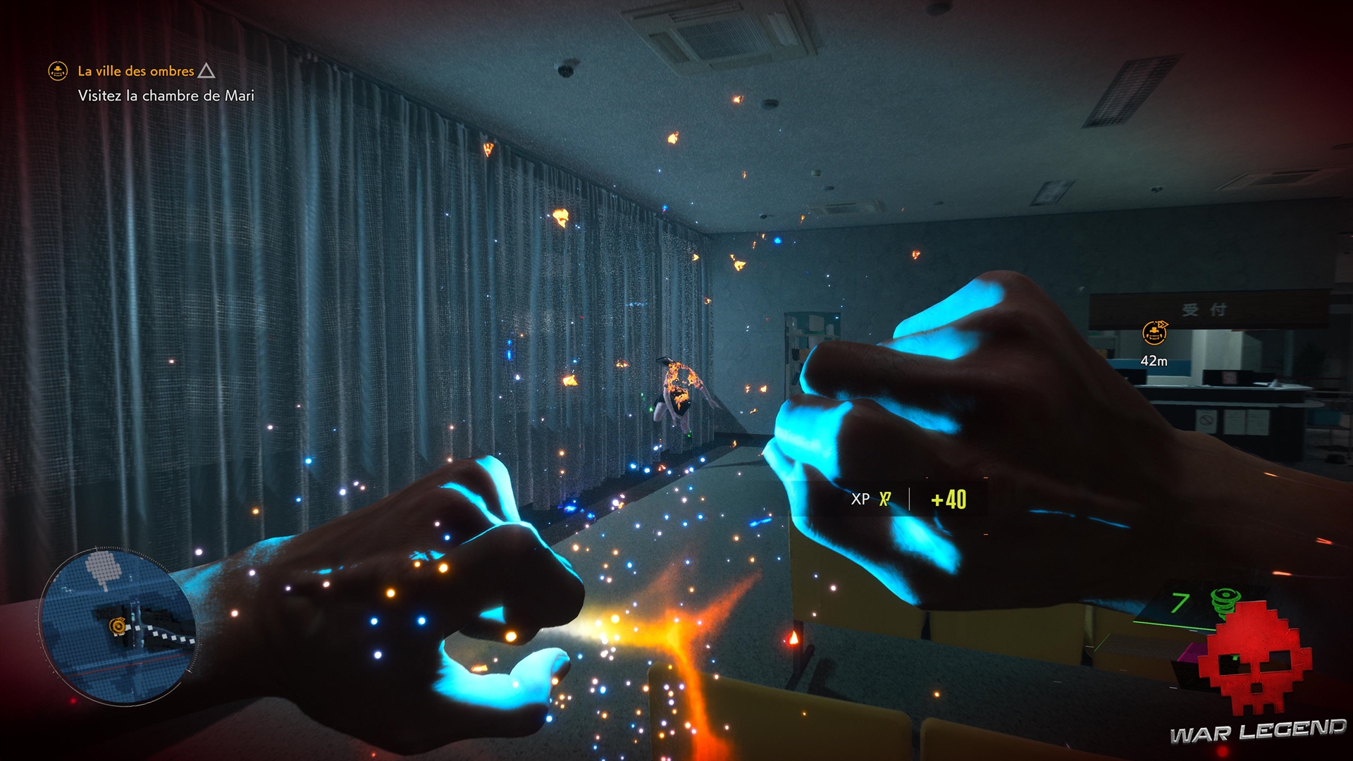 Eh oui, vous allez devoir mettre la main sur les 240 000 habitants du quartier le plus actif de Tokyo par paquets de 100, également nécessaires pour améliorer les capacités d’Akito. Tous les indicateurs sont là pour signaler que le dernier Tango Softworks a toutes les chances de m’épuiser avant même que le titre n’ait eu le temps de décoller, avec sa concentration assez hallucinante de trucs en surbrillance quand on active « la vue spectrale ». Mais bizarrement, il n’en est rien.