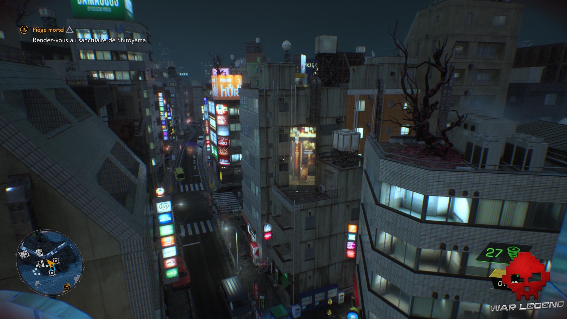 L’introduction de notions de verticalité n’était forcément nécessaire pour apprécier cette recréation de Shibuya, mais on sent une volonté de la part du studio japonais de proposer l’exploration la plus libre possible, jusqu’à donner la possibilité de sauter de toit en toit afin d’aborder des puzzles environnementaux plutôt simples, mais engageants. Si seulement ces saletés de Tengus qui permettent d’accéder à la cime des immeubles ne cassaient pas les oreilles…